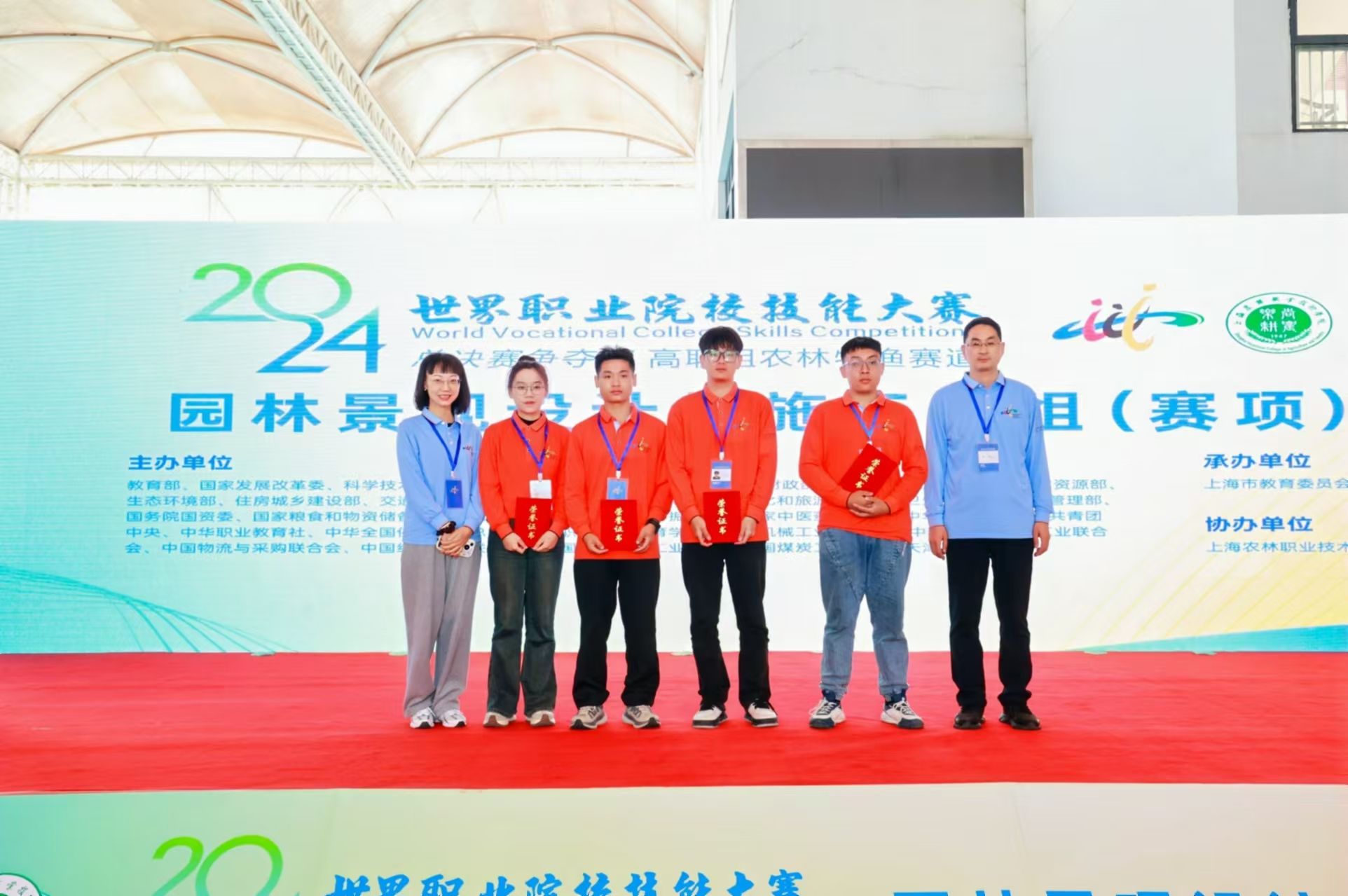 2024年世界职业院校技能大赛争夺赛高职组“园林景观设计与施工”赛项于10月27日至30日在上海农林职业技术学院举行。本次比赛,共有来自全国58家职业院校、232名选手同台竞技。Beat365教师薛正帅、江生泉指导的陈振东、王思南、应允成、闫语翔队以优异成绩荣获银奖。