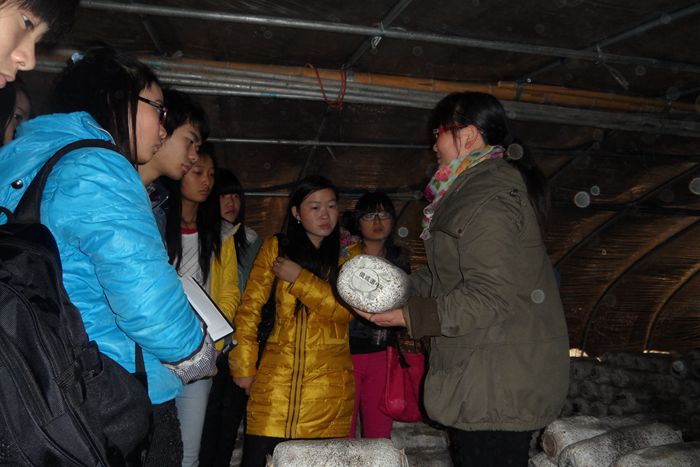 图1 学生在参观菇棚