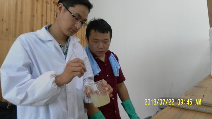 近日,生化工程系专业教师孟飞深入跨越生物化学品(滁州)有限公司指导学生暑期社会实践,来自生化系2011级应用化工技术专业的9名同学在此进行专业技能实践锻炼。该公司是香港东丽(国际)化妆品公司在大陆投资的化妆品生产企业,专门从事日化产品研制、生产及销售,设备较先进,产品以出口为主。