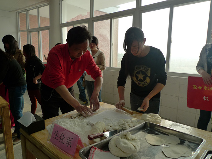 师生共同合作,同学们热情极高,全神贯注的投入到包饺子中,最终在饺子的数量、外形和口味等综合评比中获得了第一名的好成绩。