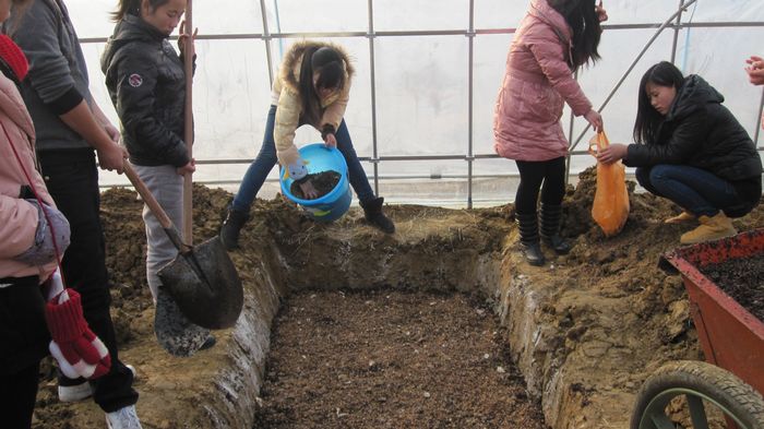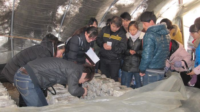 在接下来几天的实习中,同学们学习了果树芽接技术并自己动手用阳畦栽培平菇。