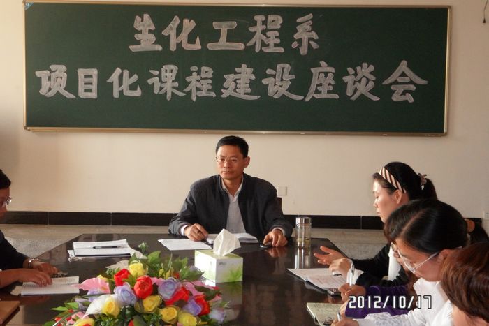 生化系现有化工材料、园林园艺、绿色食品三个教研室,每个教研室涵盖两个专业。系领导一直要求各教研室做好教研室内部管理、提高师德修养、建立健全教研室各项管理措施、落实专业建设各项工作内容、落实课程建设各项工作任务、完成常规教学管理工作、开展形式多样的教学研究活动、加强师资队伍建设等工作。