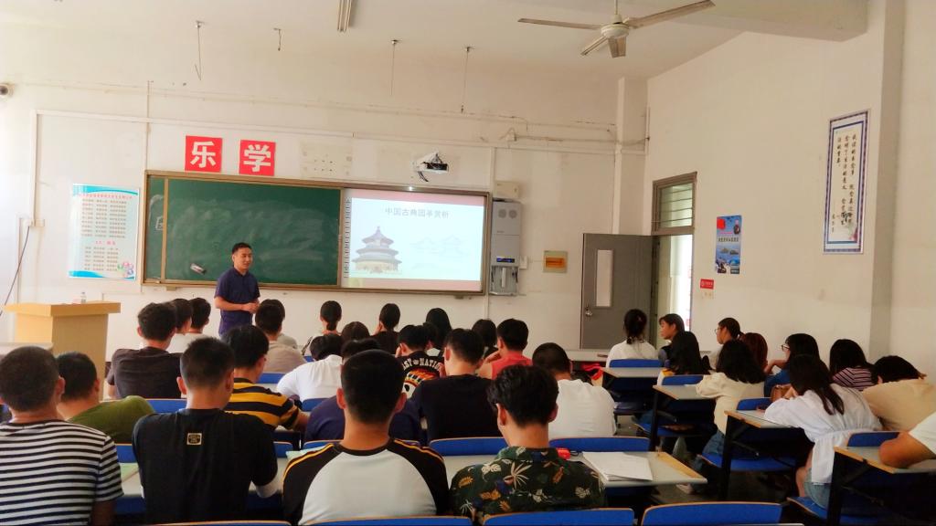 9月18日中午,食品与环境工程学院在2111举办了“中国古典园亭赏析”讲座,食环学院17级、18级园林园艺专业学生参加了此次讲座。讲座由刘杰副教授主讲。