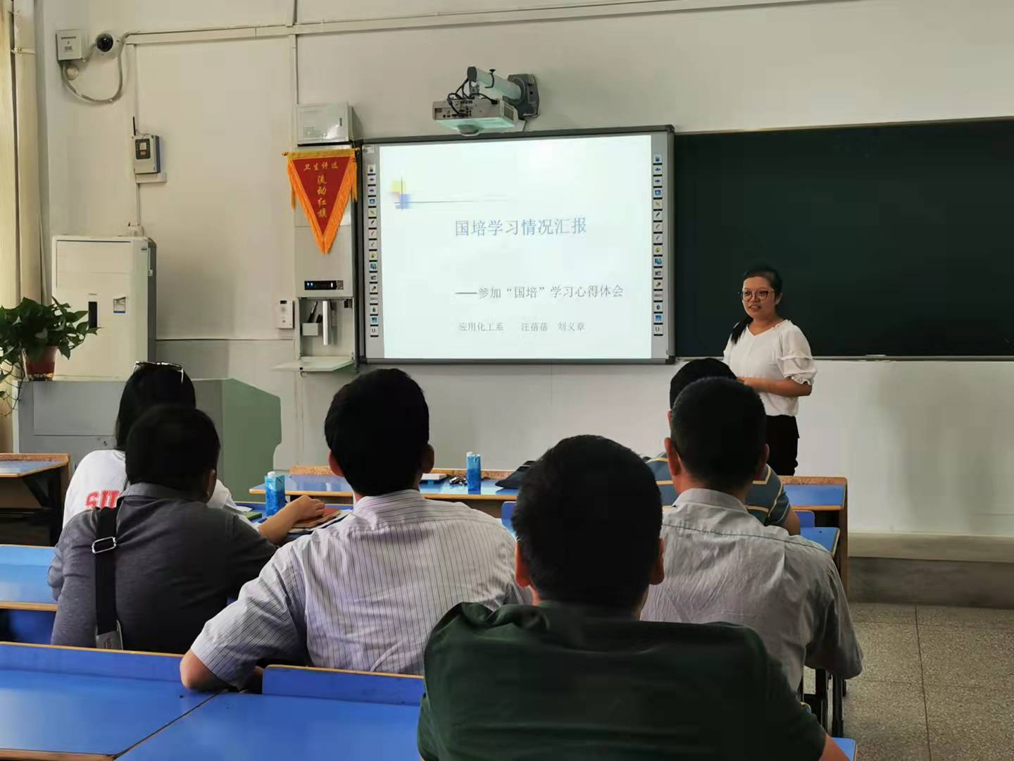 开学以后,汪蓓蓓老师在化工材料系做了组内汇报,把自己在培训期间学到的精华内容进行分享,达到了系内全体教师共同提升的目标。