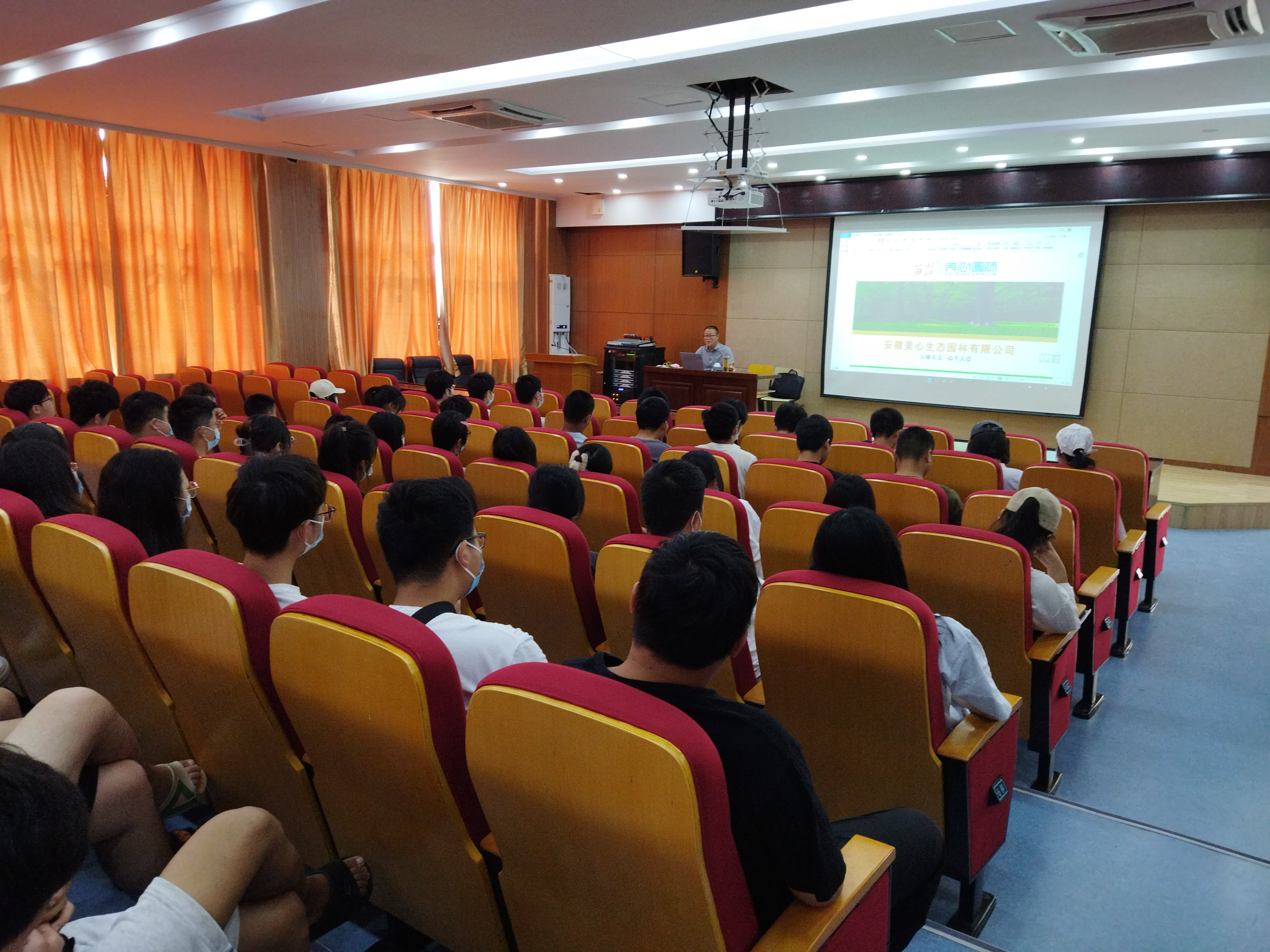 5月27日上午,安徽美心生态园林有限公司总经理徐之田应邀到Beat365食品与环境工程学院做学术报告,2020级园林技术专业学生以及园林系部分专业教师近200人共同聆听。报告会由梁建军院长主持。