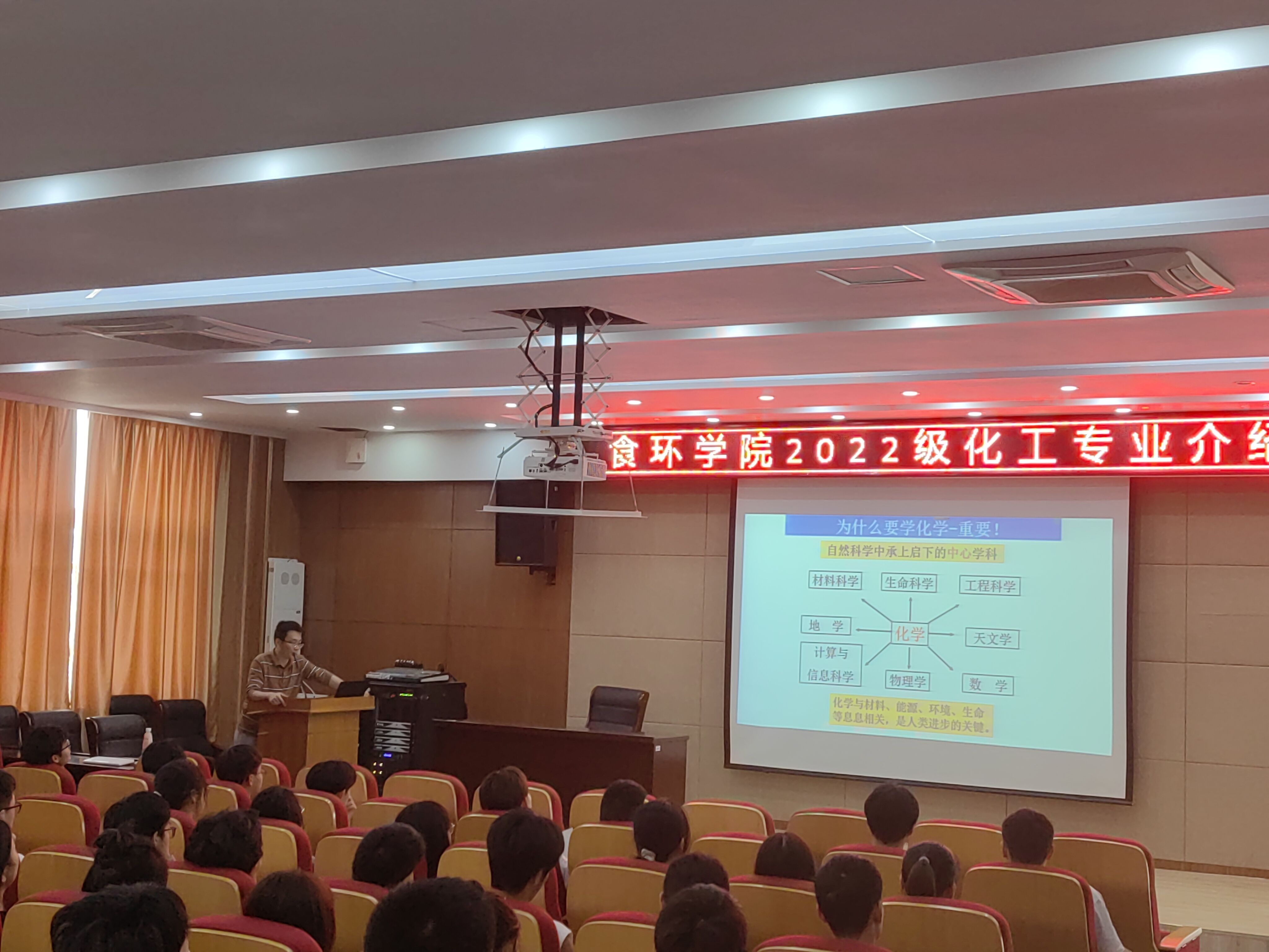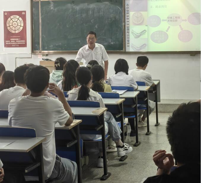 应用化工系周凯老师、刘义章教授分别从应用化工专业、环境工程技术专业的专业特色、发展前景、就业岗位等方面进行介绍,并引入了历届学生专升本、考研、自主创业的案例,激励学生要认真学习,有目标,过一个充实的大学生活。