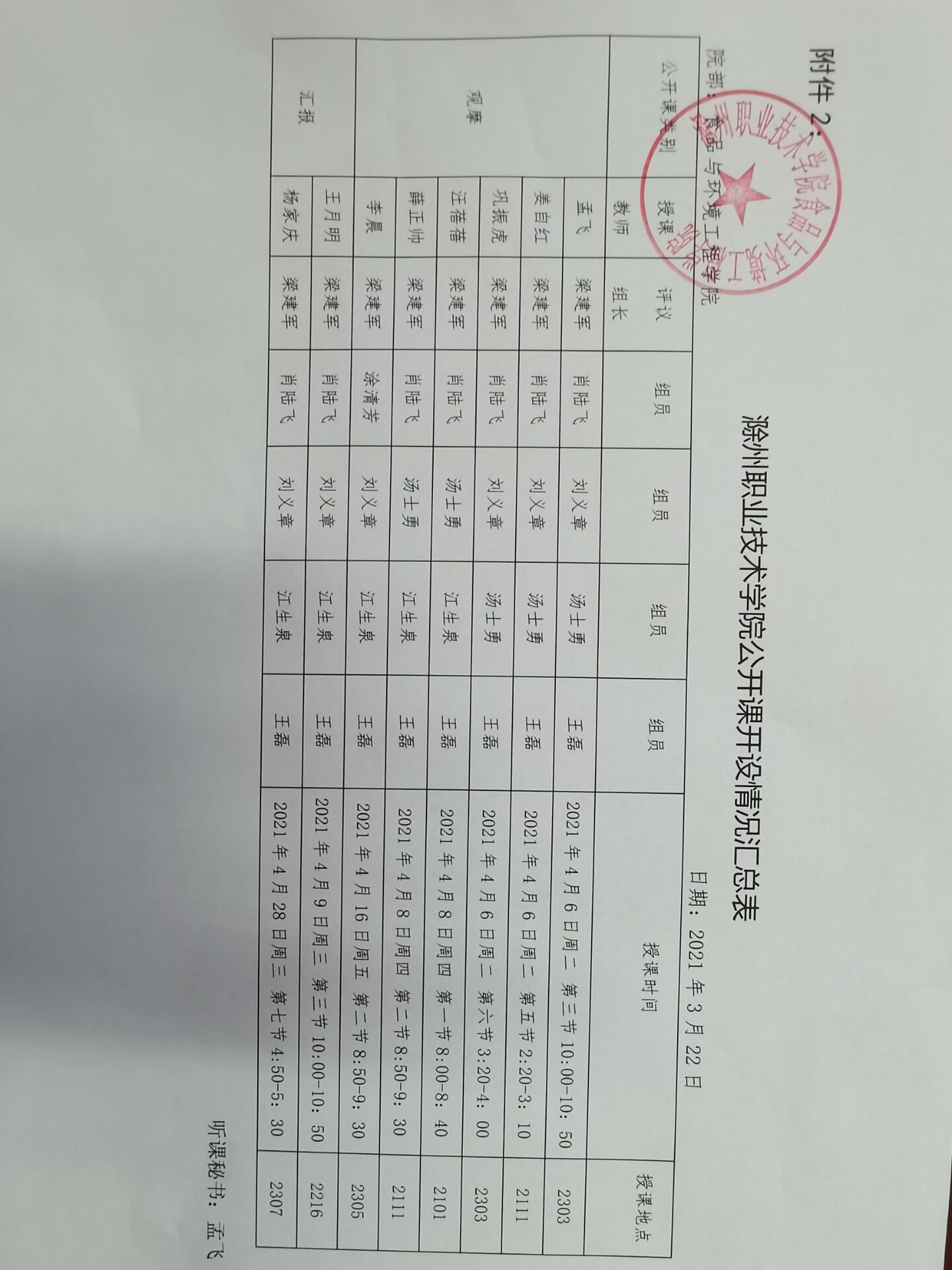 2021年食品与环境工程学院公开课公示