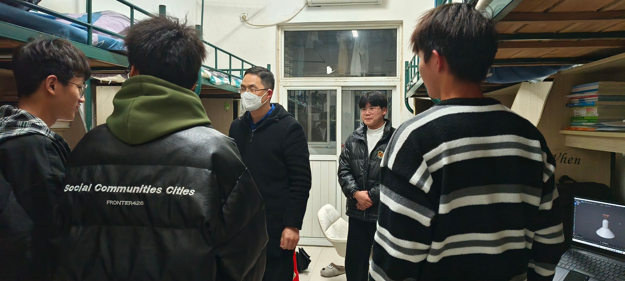 为进一步了解学生学习、生活及思想状况,更好地落实学校疫情防控及教育管理要求,食环学院副院长孟飞、总支副书记张功会于值班值守期间深入宿舍走访慰问学生。
