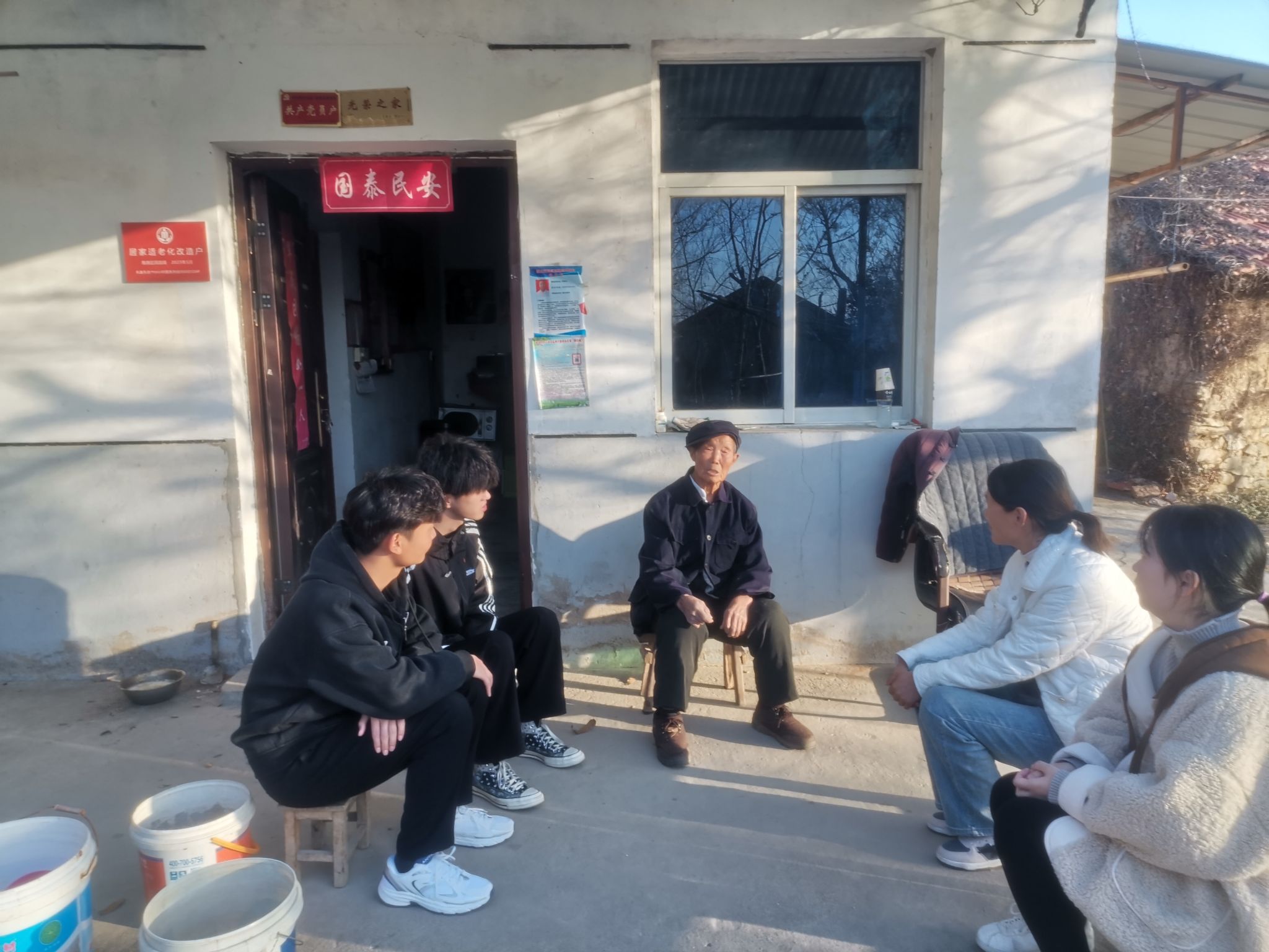党员教师张功会、李瑞瑞,团员唐良森、姜子杨等人来到滁州市南谯区施集镇,探访抗美援朝戴思友老战士。91岁高龄的戴老精神矍铄,交谈之间尽显老兵的英勇风姿。师生们围坐在一起,聆听老英雄讲述参加抗美援朝战争的经历。“部队过鸭绿江时,天上到处都是美军飞机,我们只能躲到草丛里。怕被发现,部队不敢生火做饭,战士们只能吃冰的、喝凉水,那一年朝鲜的特别冷,一直下雨、下雪,我们每天的衣服都是湿的,很多人被冻伤了、冻死了”,“每天天一亮,美军飞机就在头上飞、不时扔炸弹,炊事班的一个战友被炮弹炸掉了上半身,没有办法,只能眼睁睁的看着他死去……”戴老眼含泪光,动情的讲述深深触动了在场的师生,崇敬之情在大家的内心久久翻腾,难以平静。