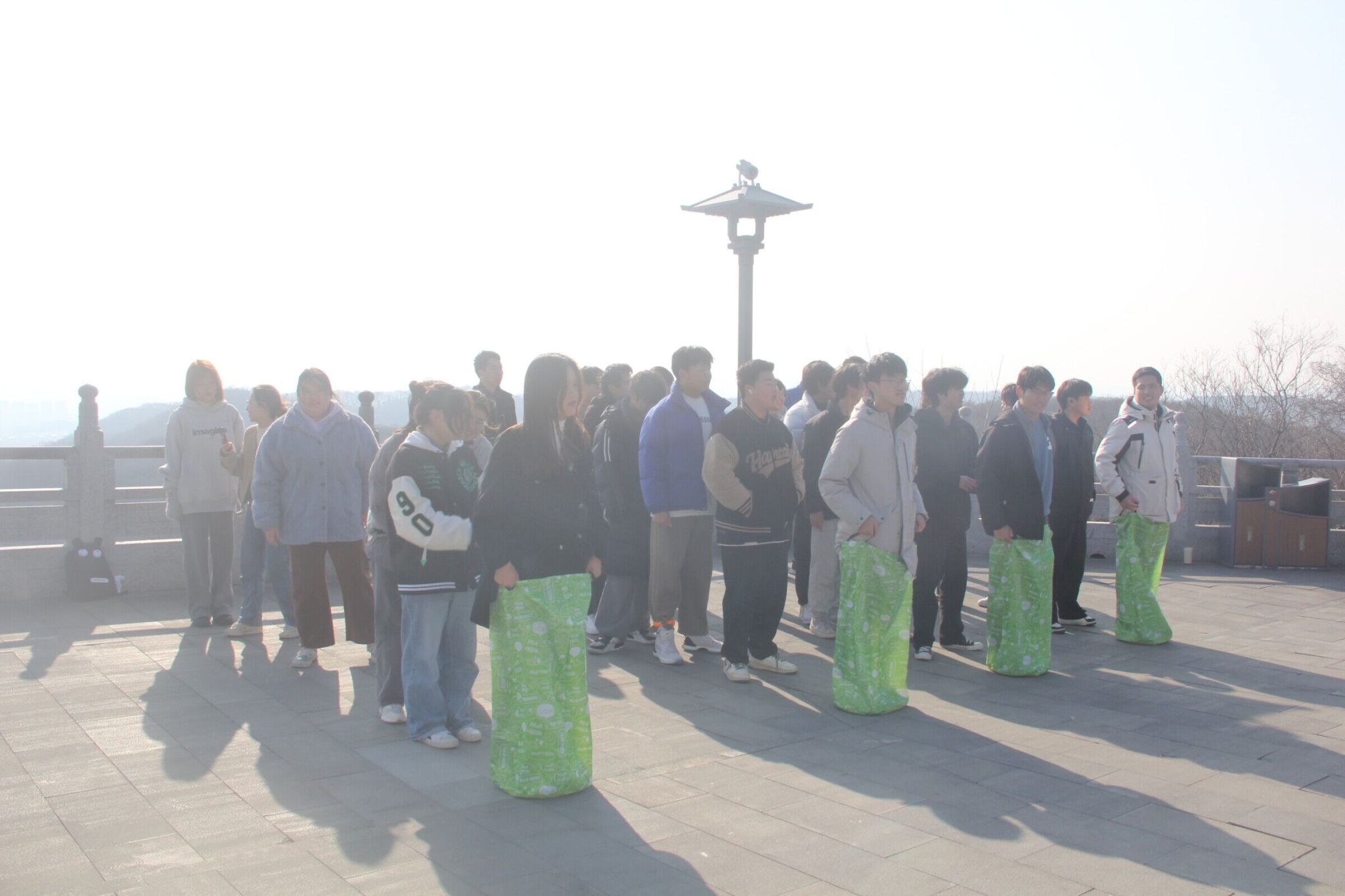 在登山过程中,同学们在呼吸着清新的空气、欣赏琅琊山秀丽景色的同时,还不忘捡拾沿途的垃圾,共同守护这绿水青山。途中大家不忘交谈学习生活的点滴,探讨人生的理想。虽然天气有些寒冷,但同学们都活力满满,互相搀扶,坚持不懈地向山顶迈进。