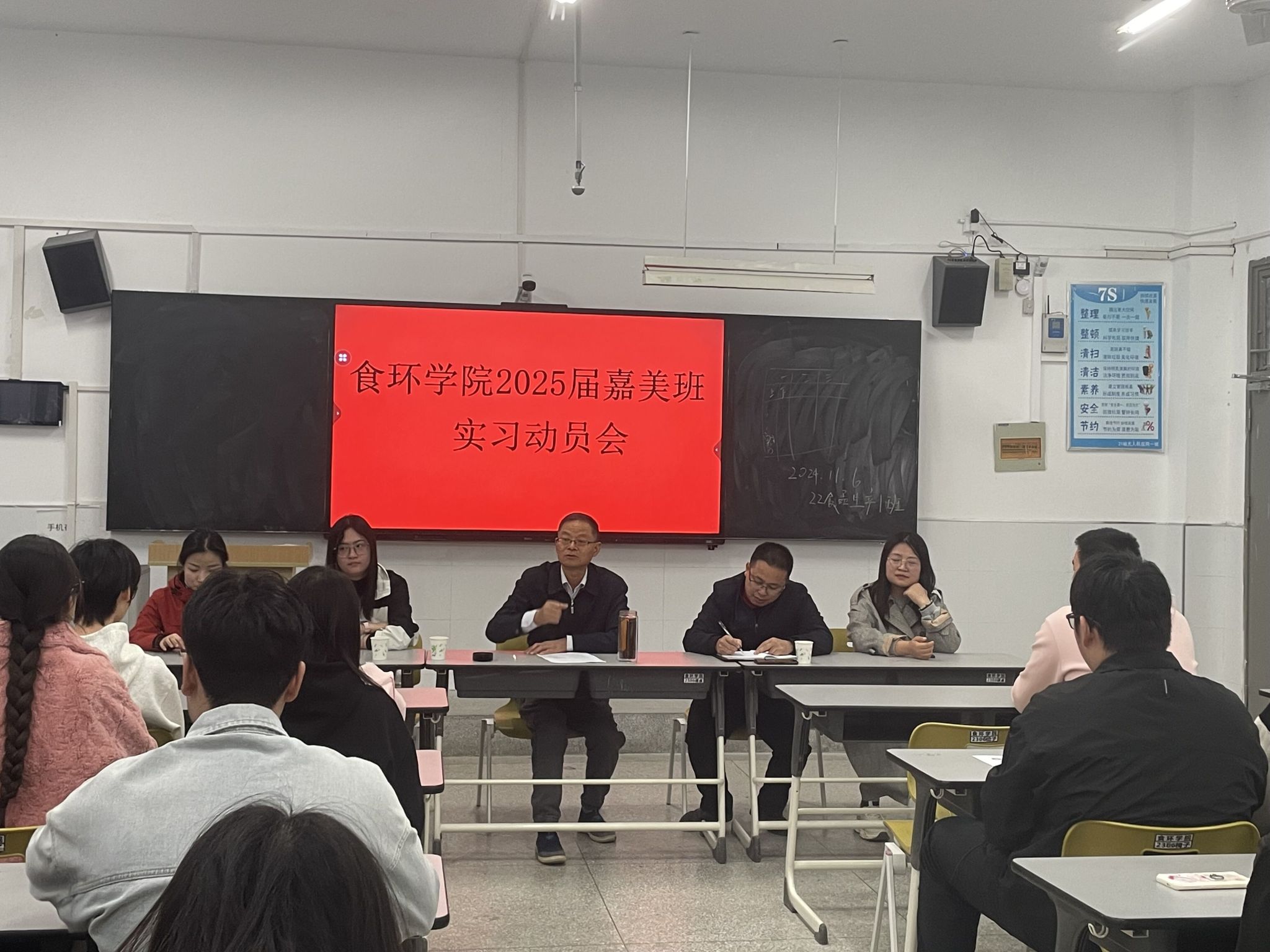 为引导2025届嘉美班毕业生正确认识实习、就业,充分了解其目的和意义,食环学院于11月6日在至善楼2306教室召开2025届嘉美班实习就业动员暨招聘宣讲会,为学生顺利实习就业提供指导、搭建平台。