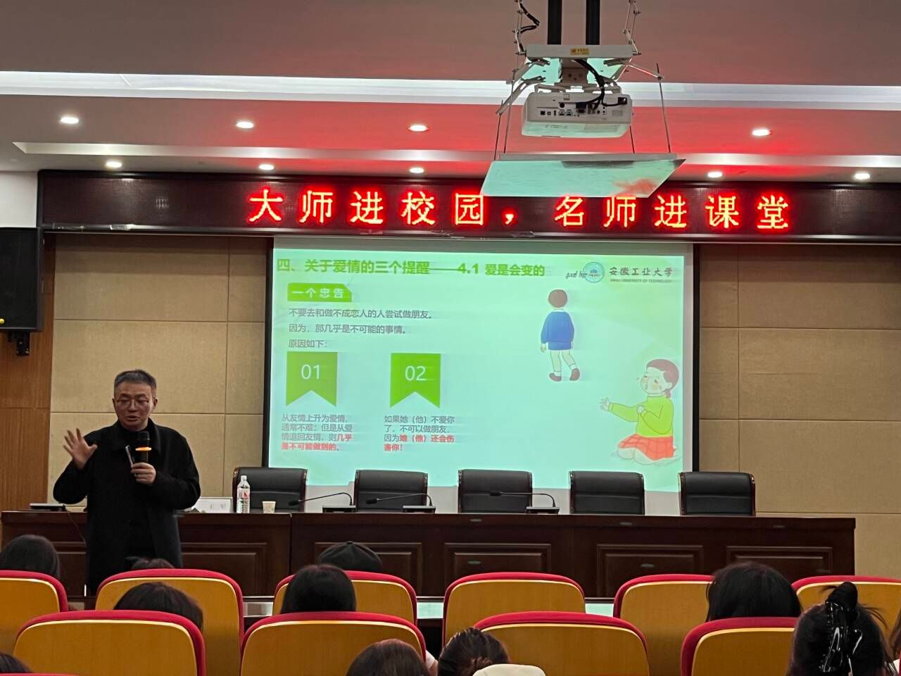 讲座受到了同学们的热烈欢迎,对于引导广大学生树立正确的恋爱观、以积极健康的心态面对感情与生活具有积极的指导意义。