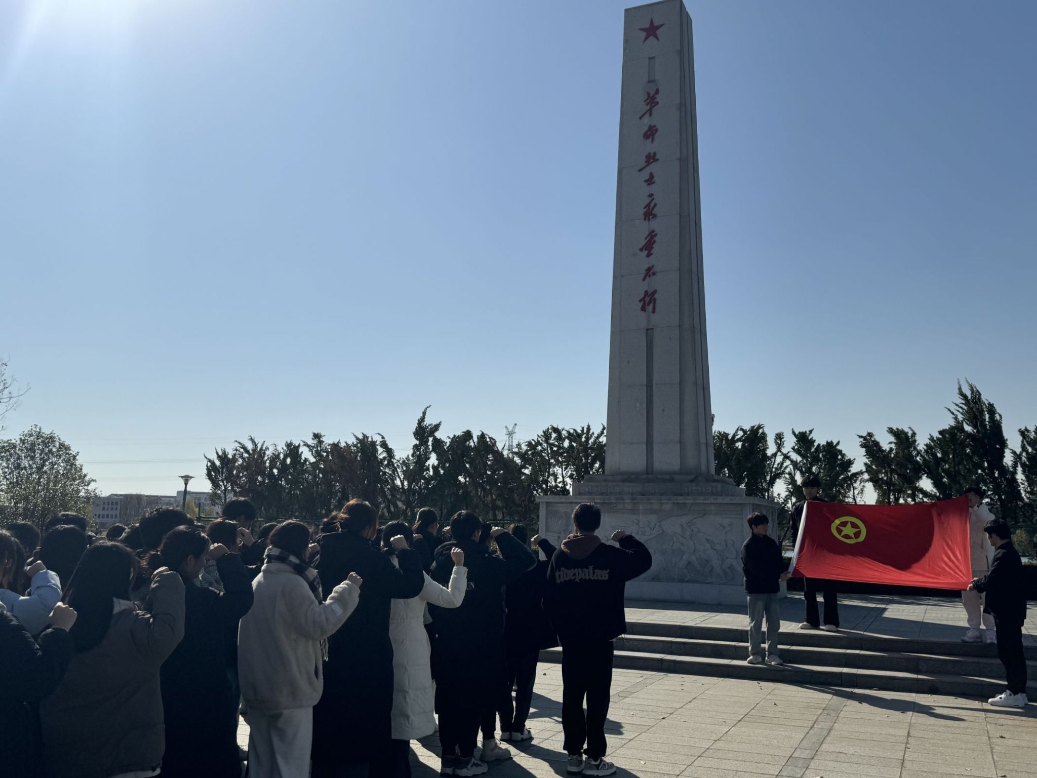 活动由支部组织委员袁宏瑞老师主持。2024级金子阳同学作为入党积极分子代表发言,他讲述了革命先烈故事,表达了对先烈的崇高敬意与深切追思,立志传承和弘扬红色精神。随后,全体团员面向团旗重温入团誓词,在铿锵有力的宣誓中,再次坚定理想信念与青春使命。师生向烈士鞠躬、敬献鲜花,表达对先烈无私奉献、英勇牺牲的崇高敬意和深切缅怀。