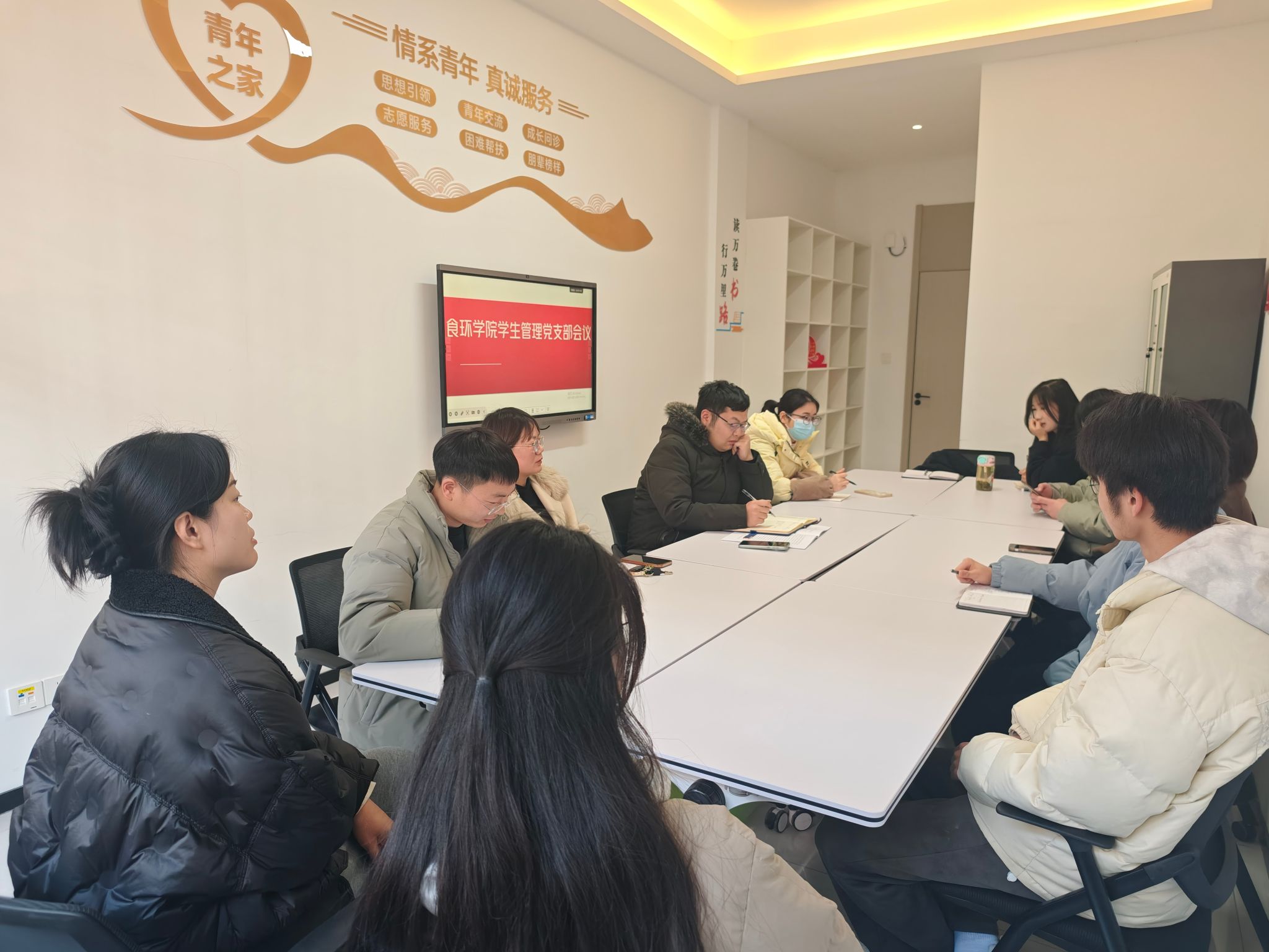 为推进党支部建设,凝聚思想、形成共识,2月27日下午,食环学院学生管理党支部在“丰乐驿站”召开党支部大会暨2月主题党日活动,党员教师与青年学生代表共同开展理论学习、讨论支部工作。