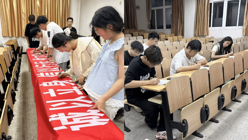 在诚信横幅签名和承诺书签字环节,现场气氛热烈庄重。印有“诚以立身,信以为本,做文明大学生”的横幅在场地中央展开,同学们有序排队,郑重地在横幅上签下自己的名字;在诚信承诺书签字活动中,同学们认真阅读承诺书内容,纷纷提笔签字,承诺会在考核考试、学术研究、人际交往、网络言行等方面恪守诚信准则,自觉接受监督,维护诚信校园环境。