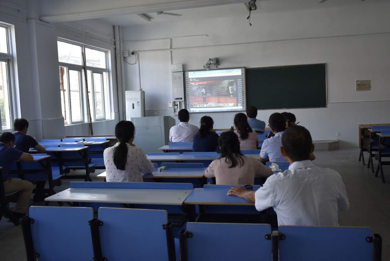 食环学院党总支书记陈震、院长梁建军同教职工一起观看了直播。