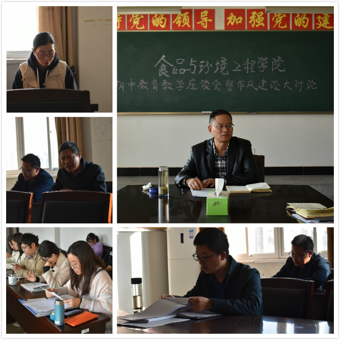 随后,其他教职工依次围绕主题发言。大家一致认为食环学院整体作风向上向好,在教育教学科研等方面取得了一定成绩,但与学校高质量发展的要求还存在工作标准不高、创新动力不足等问题,大家共同出谋划策,提出了一些好的意见建议,力争在整改落实中见实效,在全院营造更加务实奋进的干事创业氛围。