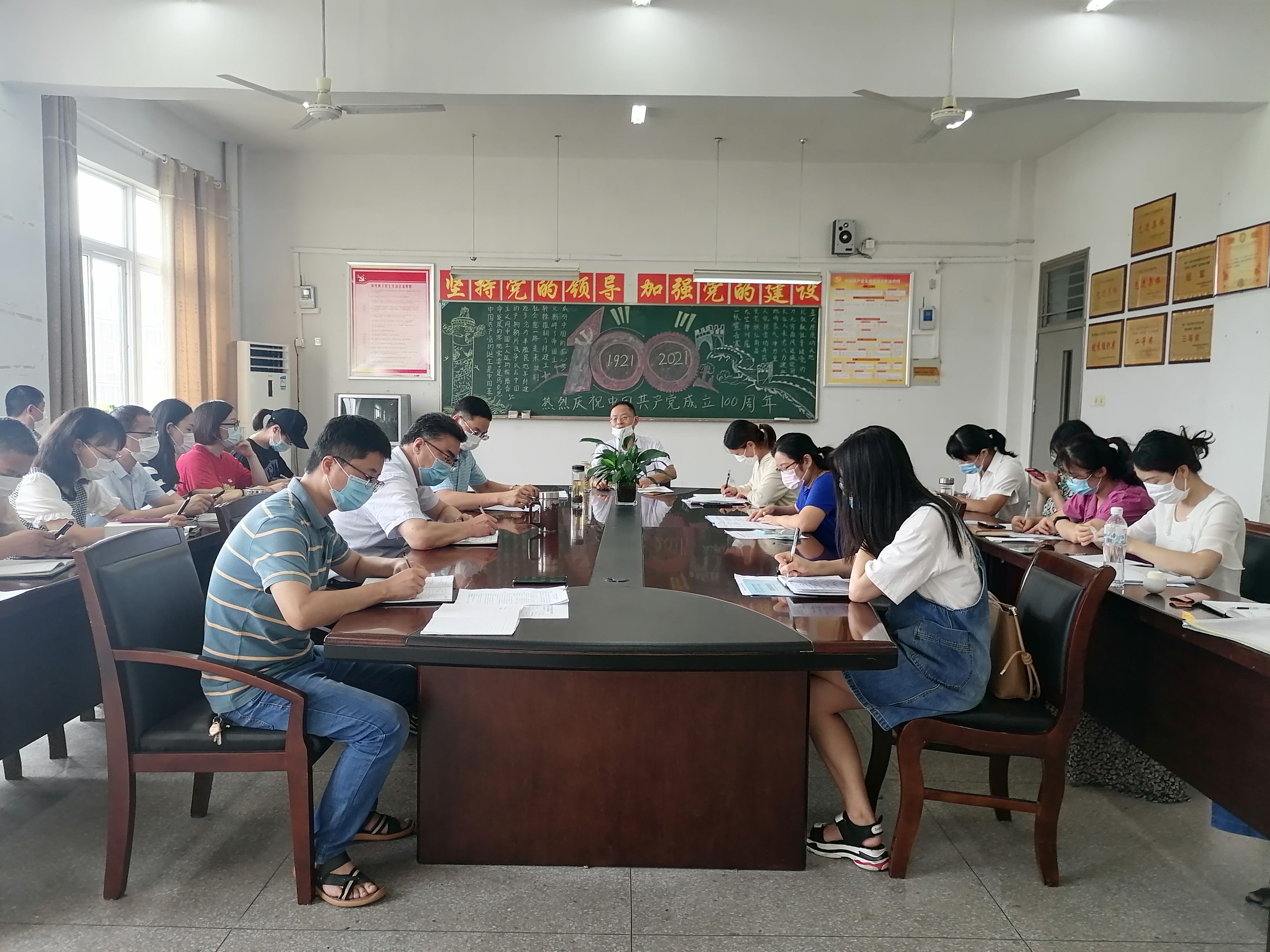 全体教职工大会于9月1日下午召开,院长梁建军代表学院党政通报了暑期重点工作,传达《Beat365唯一官方网站2021年秋季学期开学工作方案》相关精神,对我院新学期工作进行了总体部署,号召全体教职工新学期展现新面貌,做出新成绩。党总支副书记张功会带领全体教职工学习《安徽省教育厅安徽省新冠肺炎疫情防控应急综合指挥部办公室关于进一步做好秋季学期开学师生返校疫情防控工作的通知》、《高等学校新冠肺炎疫情防控技术方案》(第四版)内容。就全面落实学校开学疫情防控工作要求,党总支书记陈震要求全体教职工:要树牢常态化疫情防控意识,坚决克服麻痹、松懈、侥幸、厌战思想;要统筹协调好防疫工作,务求与日常工作、重点工作同谋划同落实;要自觉地担负起防疫责任,力求成为遵守防疫要求、执行防疫标准的榜样和模范。会议最后,副院长孟飞带领全体教职工学习了《新时代高校教师职业行为十项准则》、《Beat365唯一官方网站教师教学工作规范》及《Beat365唯一官方网站课堂规范》,要求广大教职工在新学期的工作中积极践行,以更高的标准要求自己。