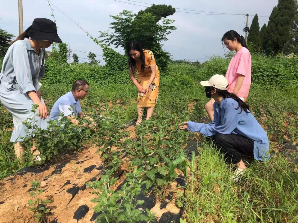 老师们深入到田间地头,针对滁菊的夏季管理、病虫害防治等问题,与滁菊研究工作人员进行了深入交流,指导企业更好地进行滁菊的无公害生产,提升滁菊生产的品质和质量。老师们提出的覆地膜生产防除杂草及减少病虫害、结合滁菊摘心减轻天牛危害等的技术措施,受到企业的一致肯定与赞扬,切实将教师的专业技术特长服务企业技术进步。