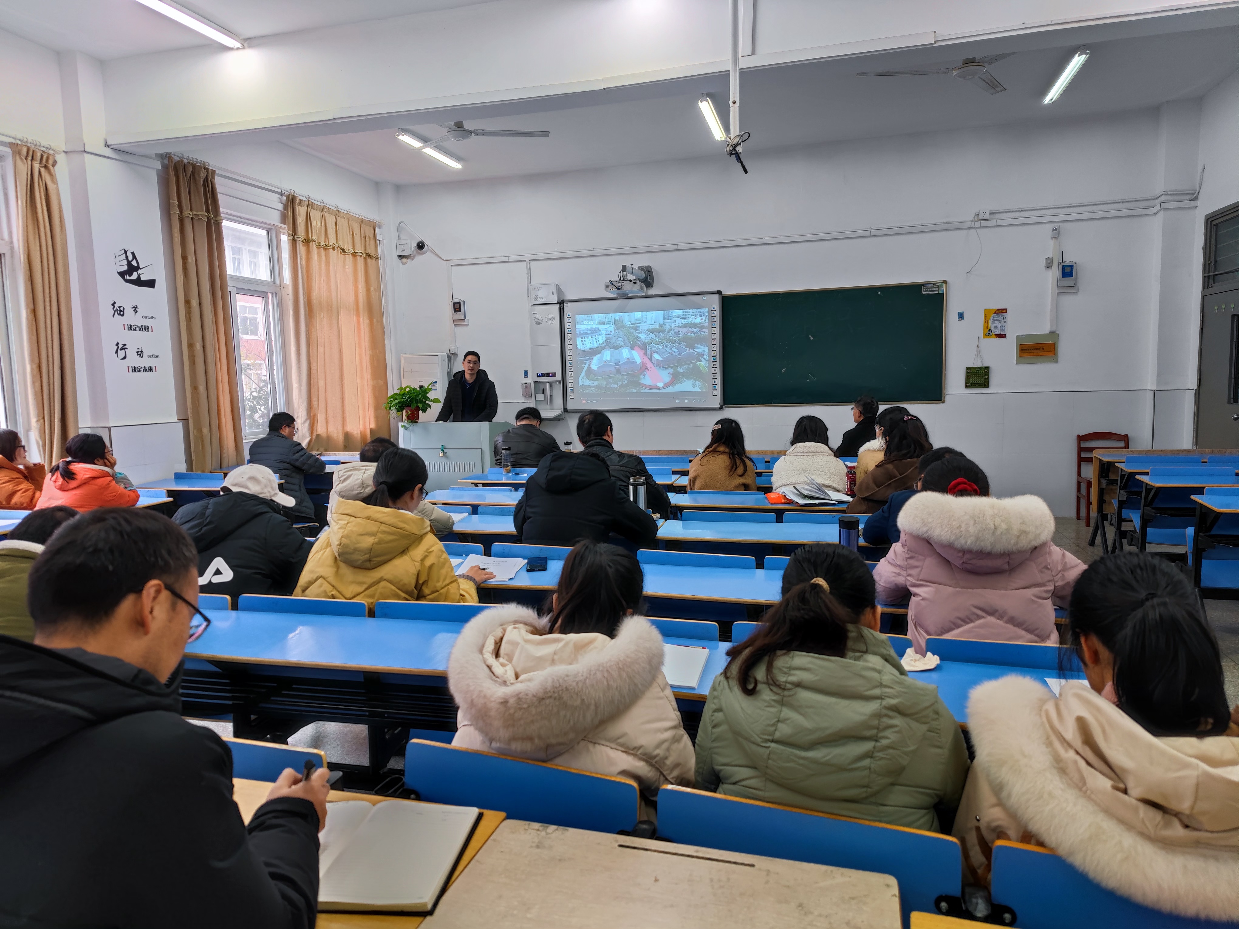 12月15日下午,食环学院组织全体教师开展理论学习,集中学习党的十九届六中全会精神、观看《榜样6》特别节目。