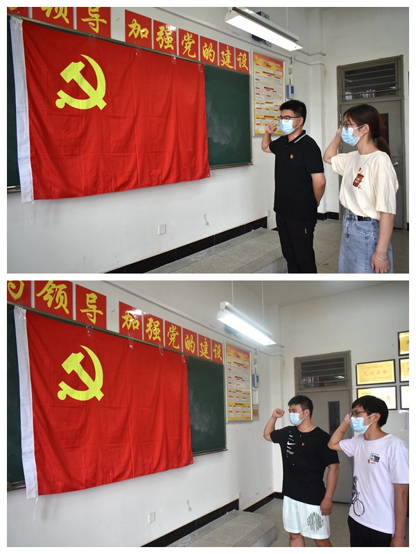 结合疫情防控要求,学生管理党支部分批组织返校毕业生党员重温入党誓词。面向鲜红的党旗,同学们郑重举起右手,庄严宣誓,重温入党誓词、重忆神圣时刻,同学们表示要带着这份美好的回忆和坚定的誓言,时刻铭记党员身份,在人生新的征程中不忘初心使命,将青春和汗水融入到中国梦的伟大实践中。