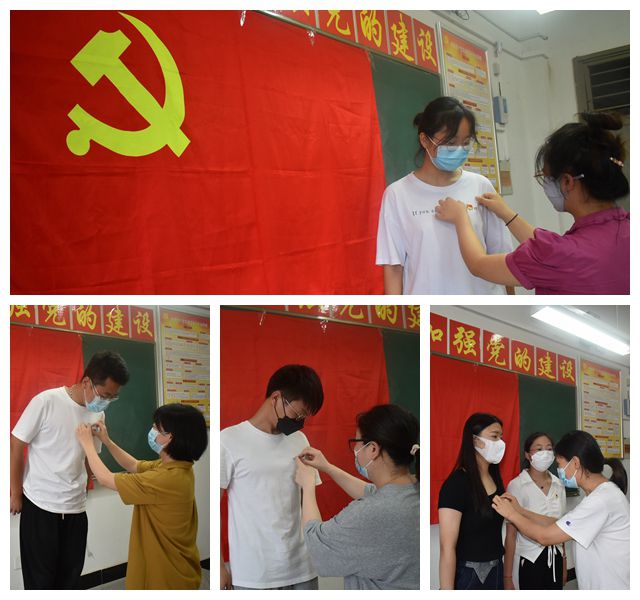 临别之际,教师党员代表张功会、李瑞瑞、张易、贾雪晴等为毕业生党员戴党员徽章,为学生送上寄语和祝福,强调佩戴党员徽章是荣誉更是激励,勉励他们在新征程中亮明党员身份、强化党员意识、接受群众监督、争当先锋,时刻保持共产党员的良好形象。