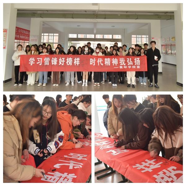 22园林1班程起庆同学作为学生代表致词,他表示:身为大学生的我们,我们应该向雷锋同志学习,发扬学习中的“螺丝钉精神”,苦练专业本领和技能,做合格的社会主义建设者和接班人。最后,团总支干部组织大家在致善楼大厅进行“雷锋月”横幅签字并留影。