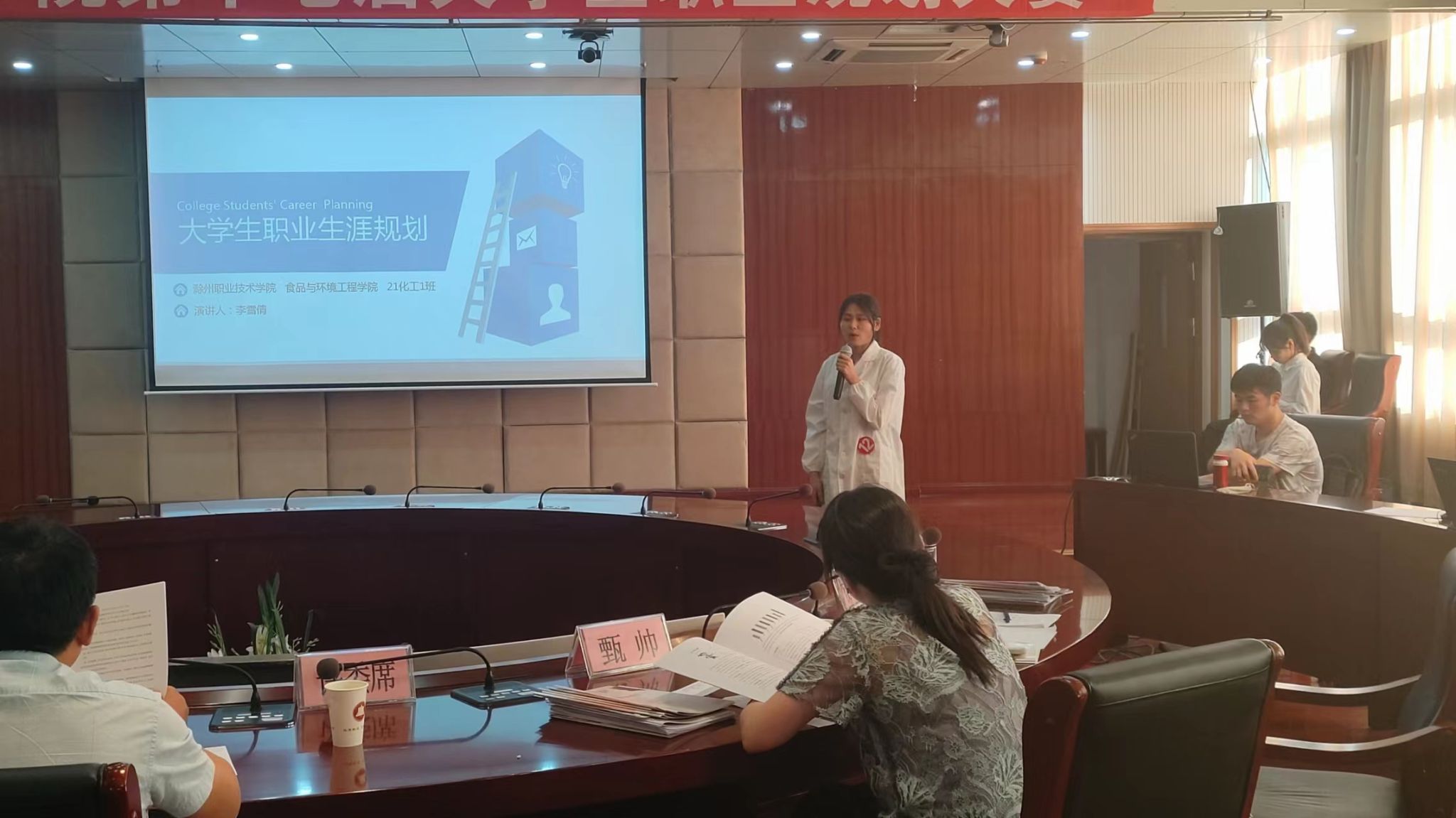本次比赛分为模拟视频播放、演讲展示和现场答辩三个环节进行。演讲展示规划中,每个选手通过软件工具测评、自我认识,SWOT分析以及对外界环境的具体分析,确立职业目标,并详细制定出持续可行的计划,评委们仔细分析了参赛选手的职业规划书,结合选手演讲展示的表达能力和现场提问的应变能力进行打分。我院21应用化工技术专业李雪倩、21园林工程技术专业杨苗苗同学荣获本次职业规划大赛二等奖,22应用化工技术专业姜子杨荣获优秀奖。