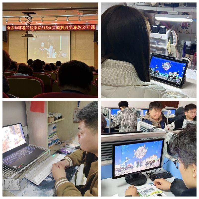 直播内容丰富多彩,有效增强了广大师生的消防安全意识,提高了学生应对突发事件的应急处置能力,对预防和减少消防安全事故发生起到了积极的教育作用。此外,学院各教职工、班级学生也通过集体、自主学习观看了公开课,充分学习了逃生演练的必要常识。