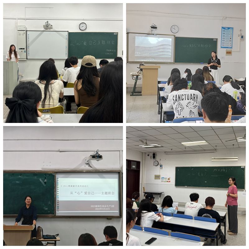5月25日是全国大学生心理健康节,“5·25”谐音“我爱我”,提醒大家“珍惜生命,关爱自己”。食环学院在2024年5·25心理健康月中,精心组织策划并开展了一系列心理活动,吸引全院600余名师生共同参与。通过开展主题班会、写作、黑板报等活动,将德智体美劳相结合,丰富同学们的校园文化生活,提升心理健康素养,增强心理调适能力,关注自己的心理健康和心灵成长,学会关爱自己,关爱他人。