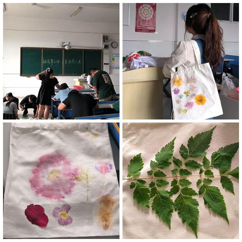 5月26日下午,食环学院远见辅导员工作室指导学生会成员在2307教室开展了植物拓印活动。各专业同学以植物为画笔,以帆布包为画布,创作出了一幅幅色彩斑斓、寓意深远的艺术作品。