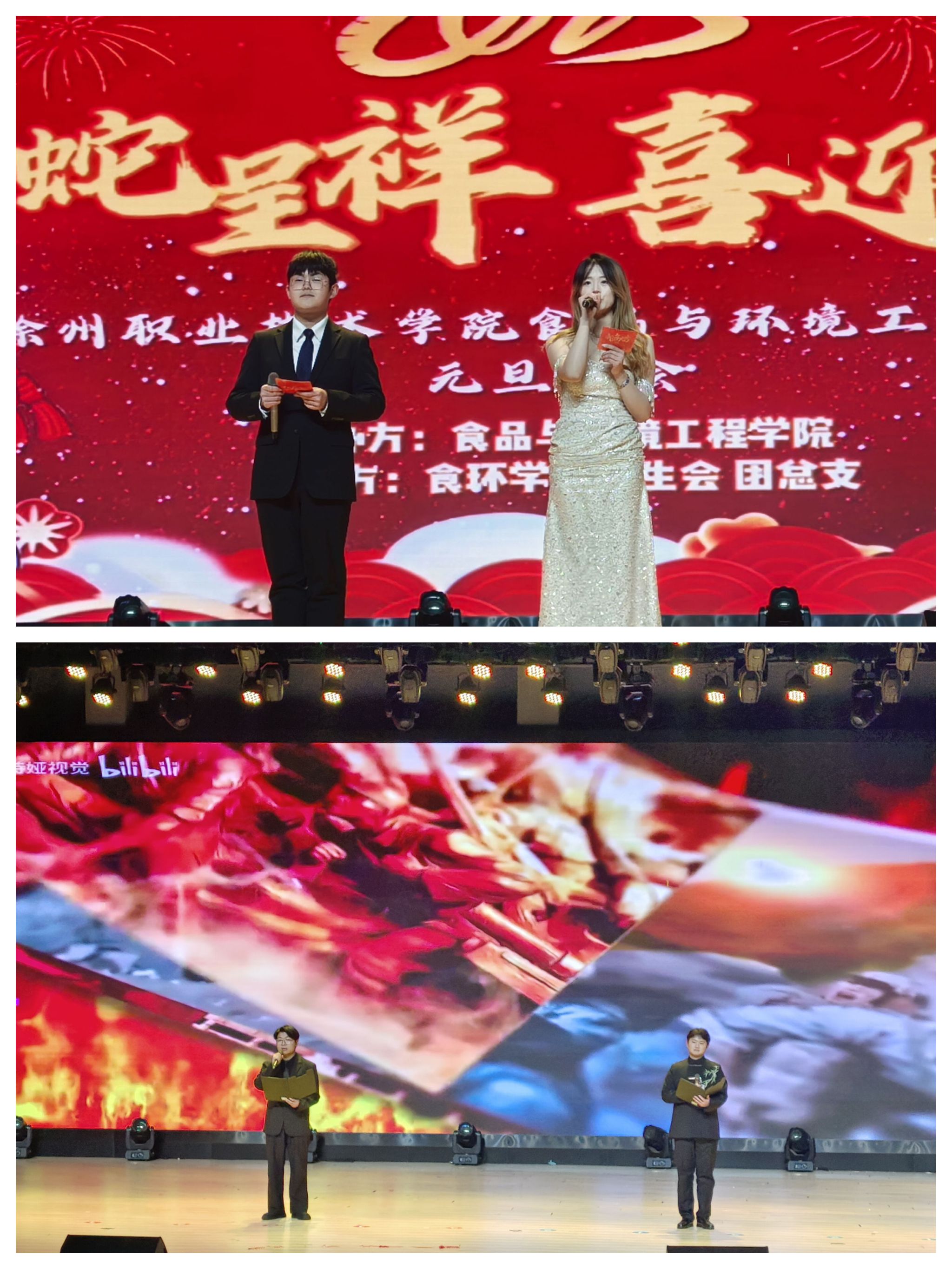 欢声笑语辞旧岁,载歌载舞迎新年。1月2日,食品与环境工程学院元旦晚会在校大礼堂如约举行,出席此次晚会的特邀嘉宾有食环学院院长梁建军、党总支书记张功会、团总支书记施明远以及教师辅导员代表。全院师生欢聚一堂共同庆祝新年的到来,为校园增添了浓郁的节日氛围,为新年奏响了快乐的序曲。