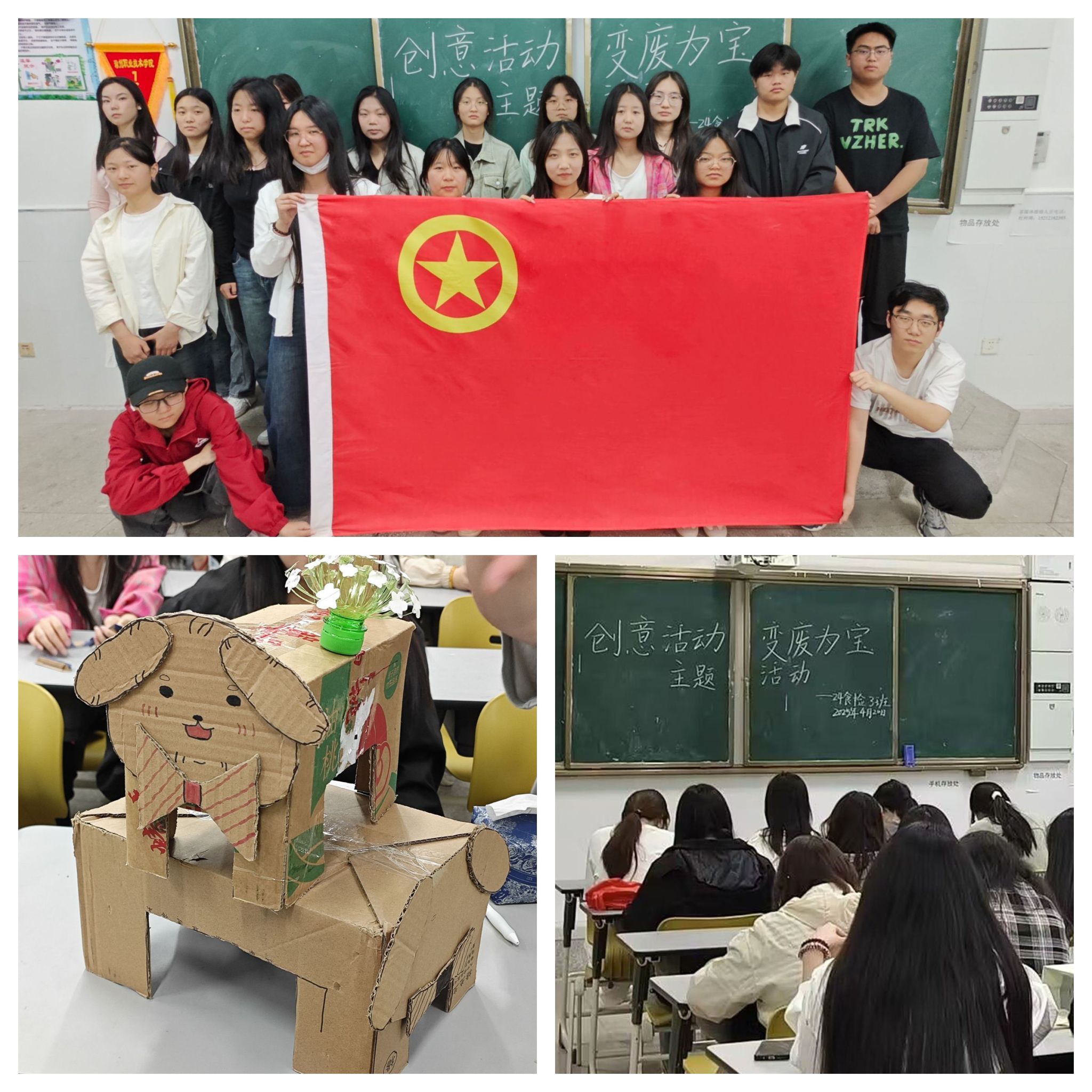 为了积极响应环保号召,加强同学们的环保意识,提高同学们的动手能力,近日,食环学院团总支组织24食检3班学生在致善楼2314教室开展“创意手工,变废为宝”主题活动。