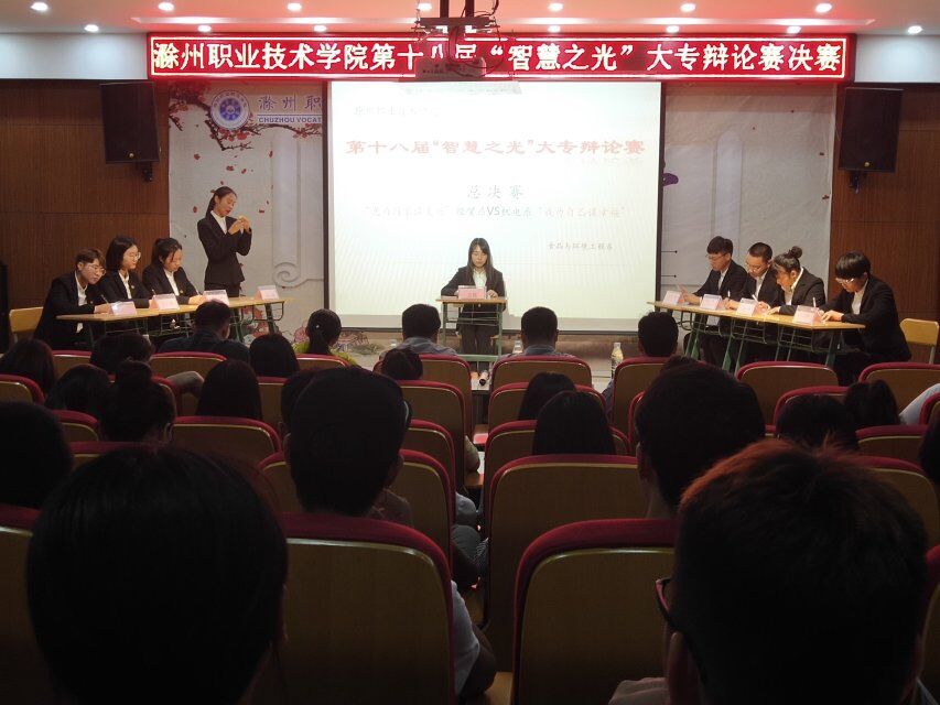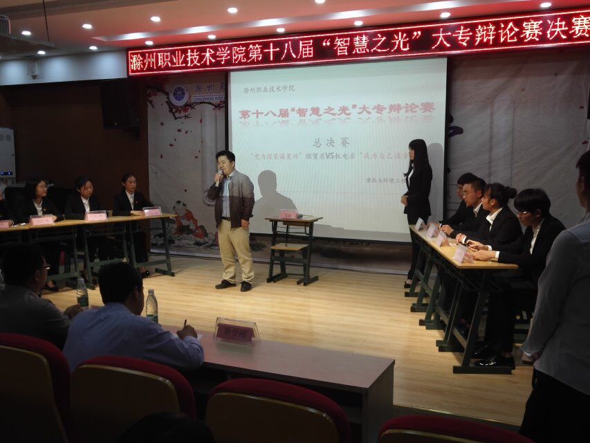 5月23日晚7点,由院团委主办,思政部、基础部、食品与环境工程系联合承办的Beat365唯一官方网站第十八届“智慧之光”大专辩论赛决赛在南阶203教室隆重开赛。出席本次比赛的评委有思政部张家莉老师、教务处唐义武老师、办公室熊顺喜老师、招就处徐云龙老师、学生处耿学刚老师。