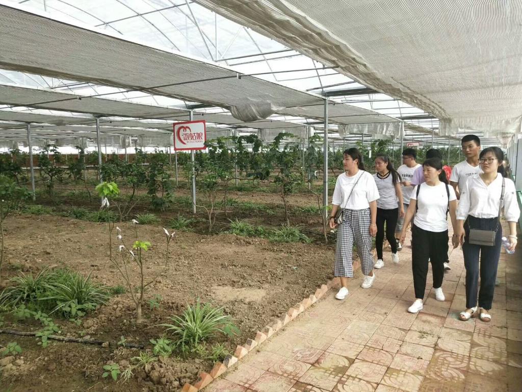 暑期社会实践小分队一行6人先后来到阜阳有机良庄、阜阳正邦饲料看望慰问15级园艺技术专业毕业生朱彬彬、15级绿色食品生产与检验专业毕业生李嫚嫚。同学们共同参观蔬菜水果大棚、企业厂房,积极主动的了解学长学姐的工作环境和工作内容,向他们请教工作经验和心得。