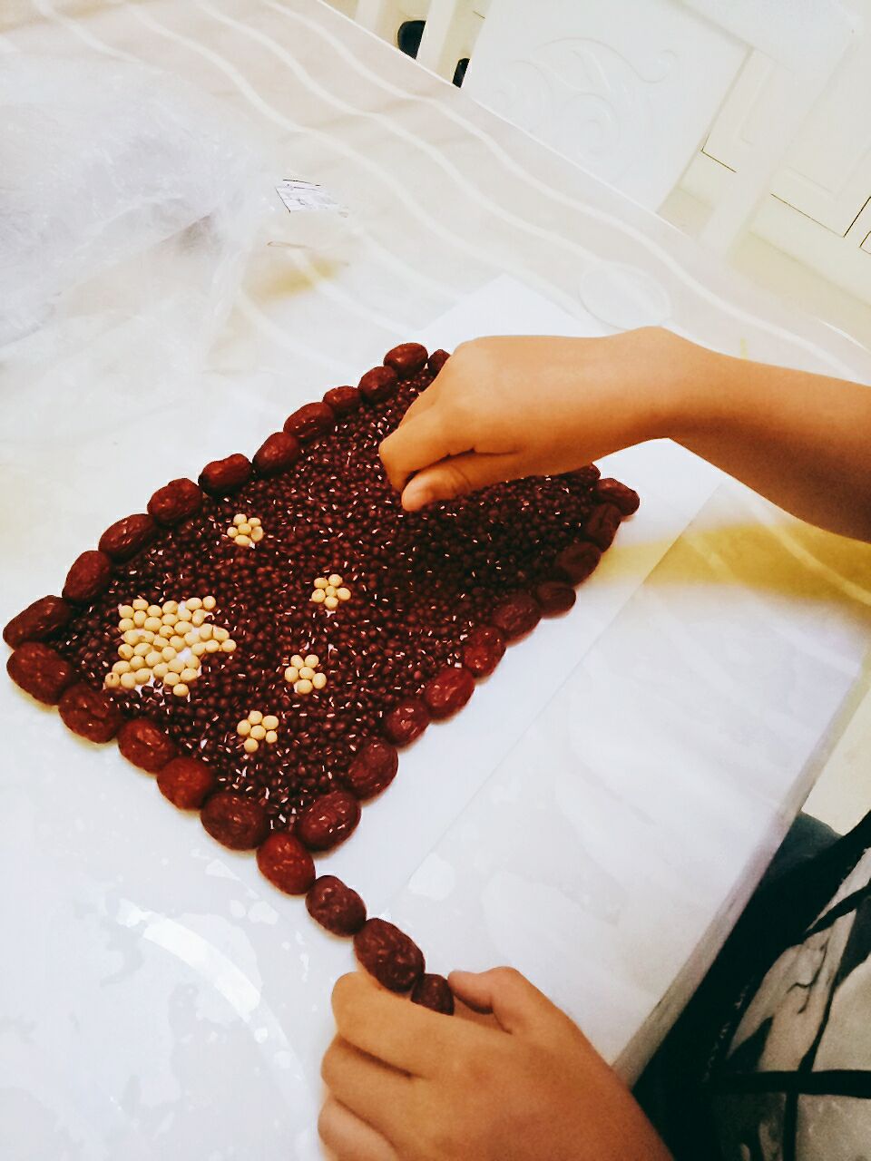 国庆期间,节日的喜庆氛围感染着每一个人,大街小巷都是迎风飘扬的五星红旗,而越来越多的年轻人开始采用更新奇创意的方式为祖国庆生。食环系的学生干部们在假期中,利用家乡刚收获的玉米、豆子等摆出国旗和字样,分享收获的喜悦,表达对祖国母亲的祝福。