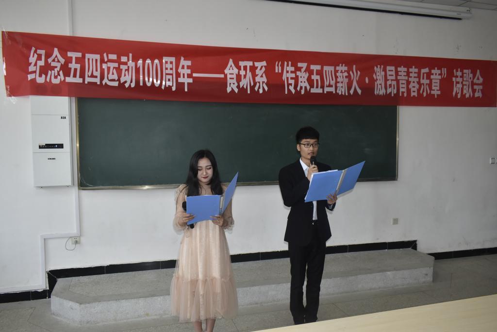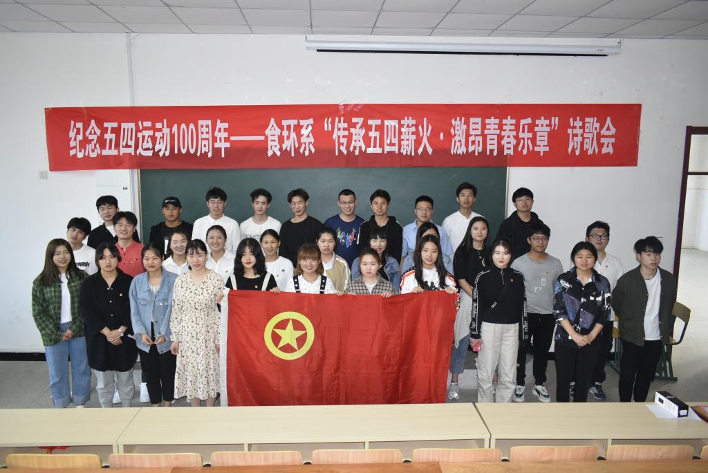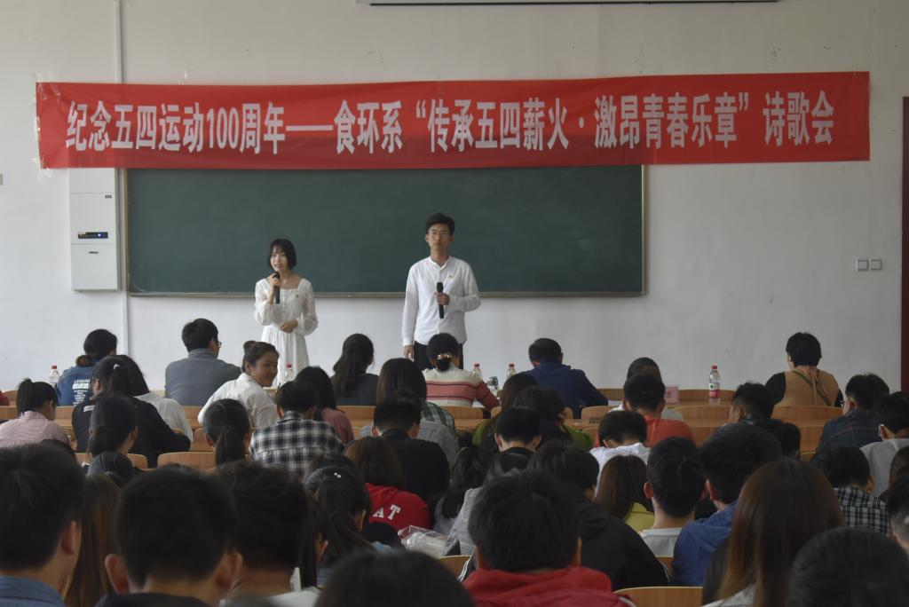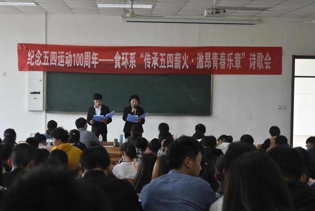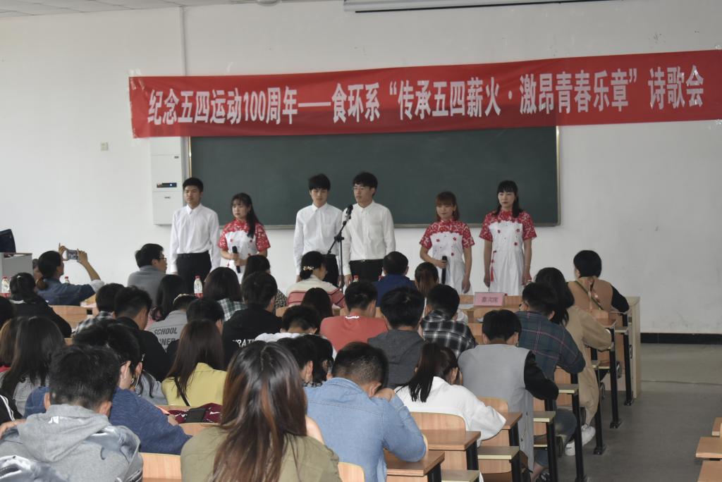 4月24日下午,南阶101教室内诗声琅琅,为隆重纪念“五四”运动100周年、建团97周年,弘扬五四精神,食环系团总支举办的“传承五四薪火·激昂青春乐章”经典诗歌会在这里精彩上演。