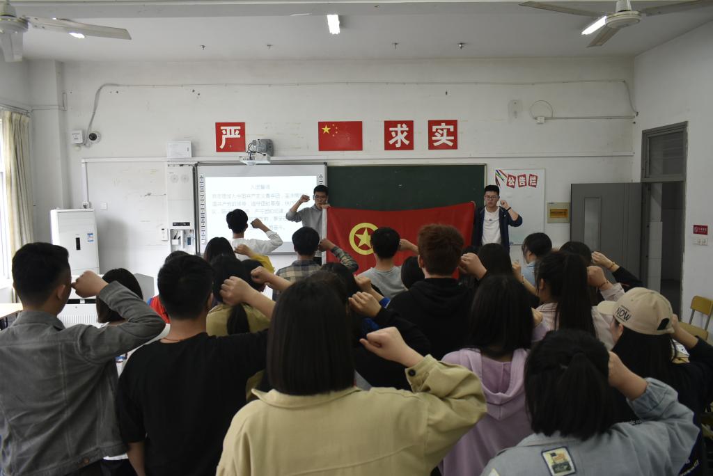 4月25日中午,17食品营养团支部召开主题团日,食环系团总支组织团干进行现场观摩。活动由该班班长陈晨同学主持,他首先播放了五四运动相关影片;随后,团员代表赵守语同学进行五四主题演讲,团支部书记洪欣同学讲解五四经典图片资料,向支部团员发出继承弘扬五四精神、争做时代新人的号召。班级团员分五组开展了五四精神学习和讨论,并对学习结果进行展示、汇报。最后,团支部带领全体团员重温入团誓词、找寻入团初心。