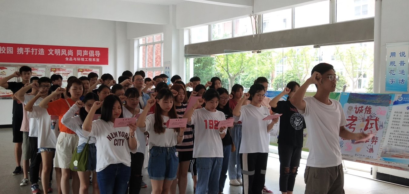 6月21日中午,食环系33期、34期入党积极分子和各班主要干部50余人参加“诚信考试”主题宣誓和签名活动。