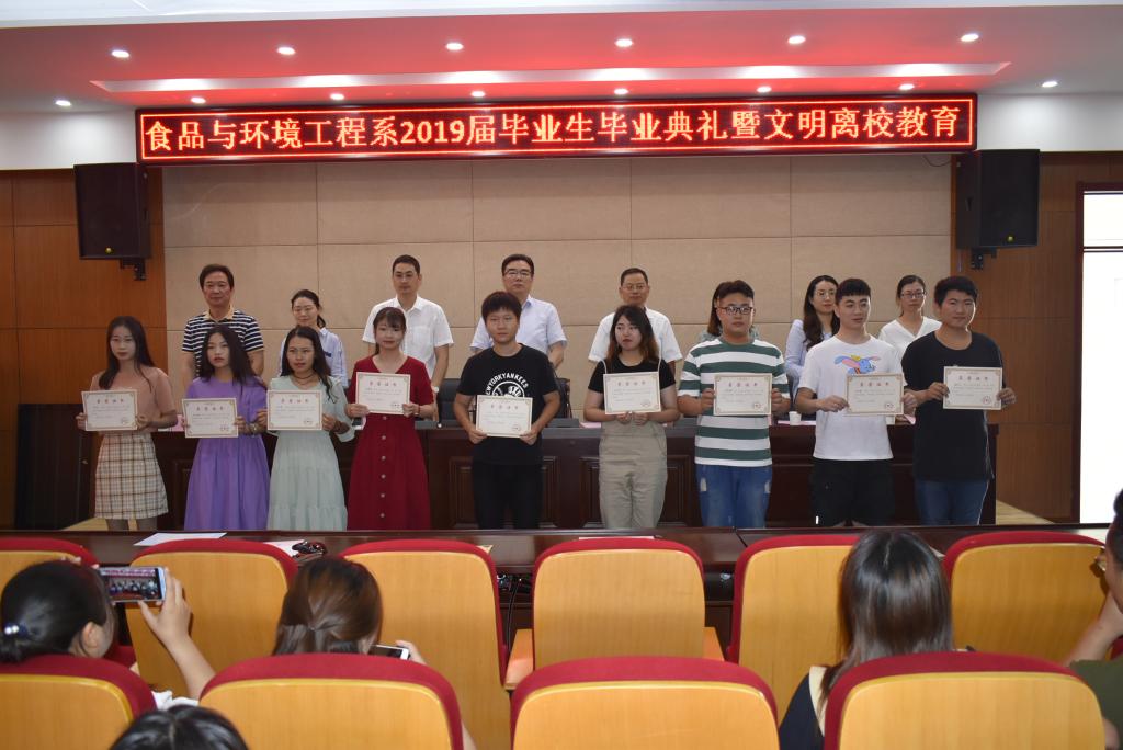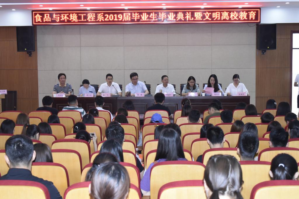食品与环境工程系2019届毕业典礼暨文明离校教育于 6月25日上午在南阶205教室隆重举行,全系192名学生圆满完成学业,即将扬帆起航,驶向人生新征程。