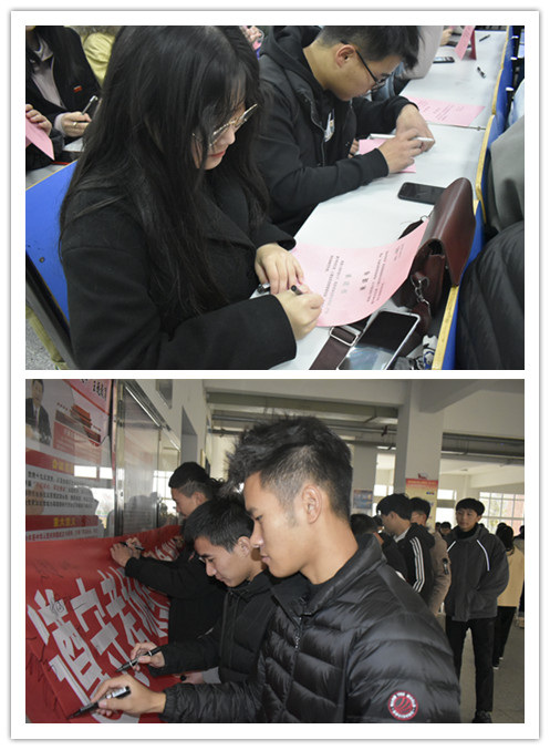 入党积极分子负责人田志强同学带领同学们重点学习了学院关于考试的相关管理规定,倡导诚实应对考试,杜绝一切作弊行为,做学生的表率。随后,全体成员在田志强和程馨蕊两位同学的带领下郑重宣誓:“我承诺诚信参加考试,严格遵守考试纪律,以真实的成绩接受检验,在学生中发挥先锋模范作用”,并在“遵守考场纪律,争做诚信学子”的条幅上郑重签名,表达坚定诚信考试、拒绝作弊的决心。
