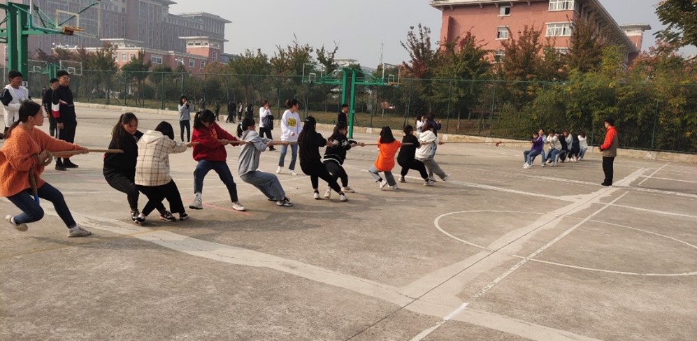比赛过程中,我院参赛队员努力拼搏,无论是场上还是场下,气氛都异常激烈。当比赛的哨声响起,只见参赛的队员们紧握长绳,卯足了劲拼命往后拉!未参赛的学生自发组成啦啦队为比赛队员呐喊加油,哨子声、呐喊声此起彼伏,现场激烈的呐喊声将整个活动推到了高潮!经过团队的努力拼搏,我院女生队在拔河比赛中获得了二等奖的好成绩!