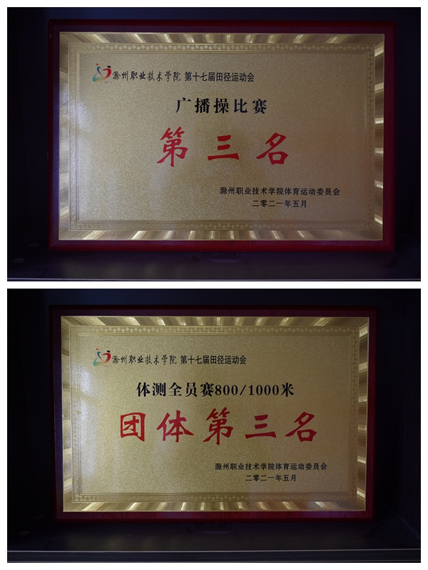 在全校广播操比赛中,我院80名同学动作连贯自然、整齐划一、神态饱满,赢得了评委老师的一致好评,获得了第三名的优异成绩。