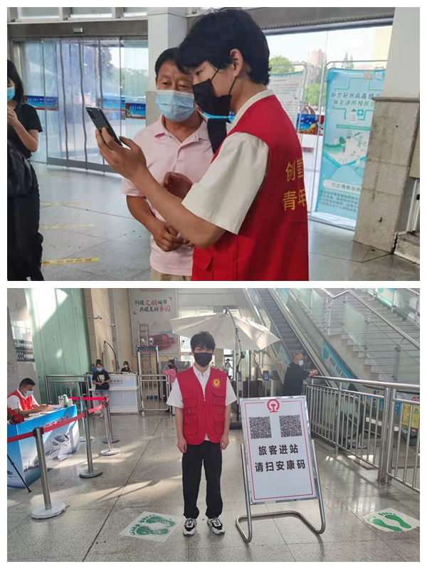 20食品营养1班魏金志同学,8月初加入到滁州市疫情防控的志愿服务队伍中,在滁州北站协助工作人员做好疫情防控工作,引导来往旅客测量体温、扫安康码,记录中高风险地区人员信息等。为期半个月的志愿服务让他感觉虽辛苦但很充实,深刻的体会到疫情防控的重要性和工作人员的辛苦。
