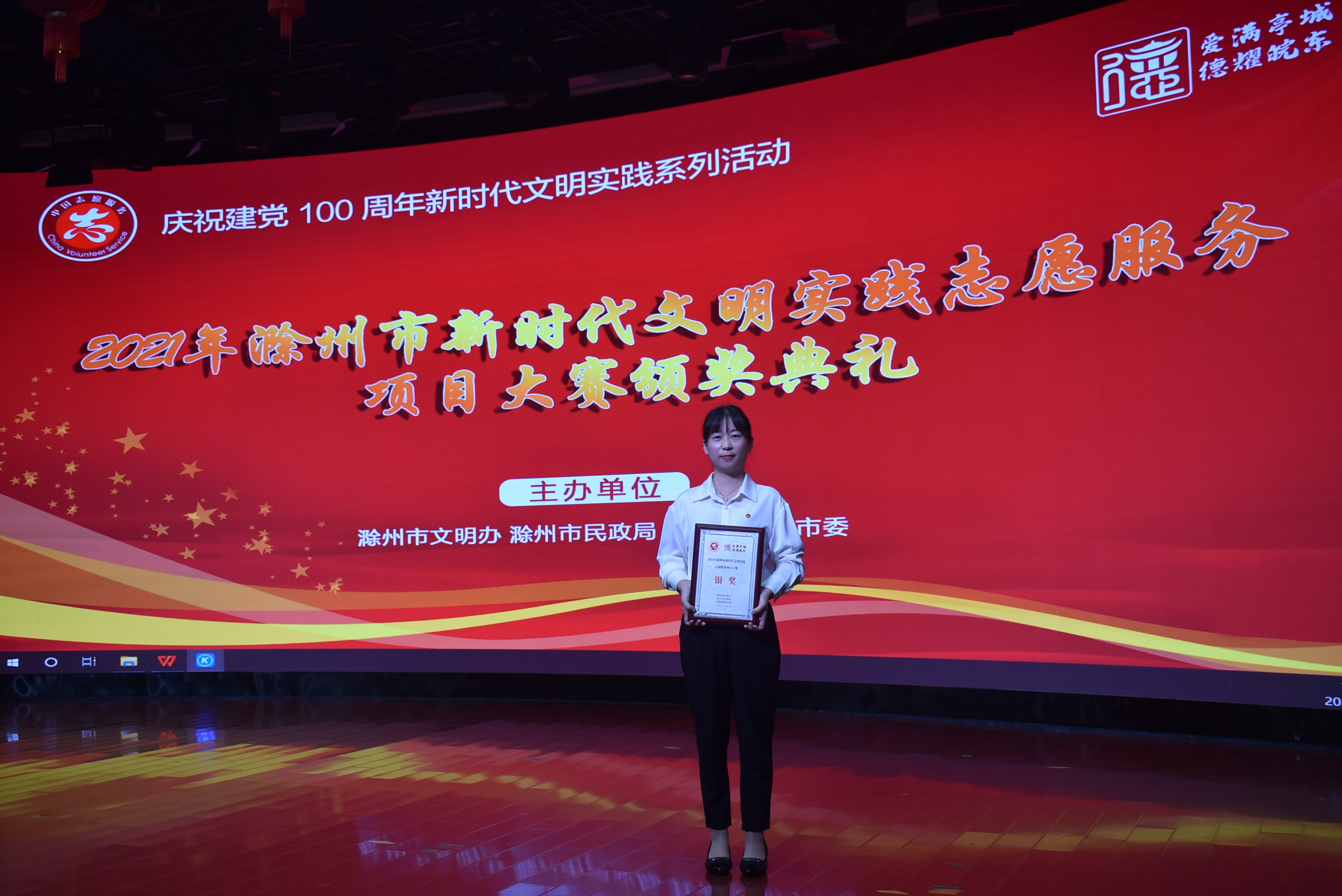 9月29日下午,2021年滁州市新时代文明实践志愿服务项目大赛在滁州市第二实验小学报告厅举行。Beat365食品与环境工程学院“萤火虫·环保”志愿服务项目在比赛中喜获银奖,团总支指导老师李瑞瑞作为项目负责人作现场汇报,经过激烈的角逐,最终取得银奖的好成绩!