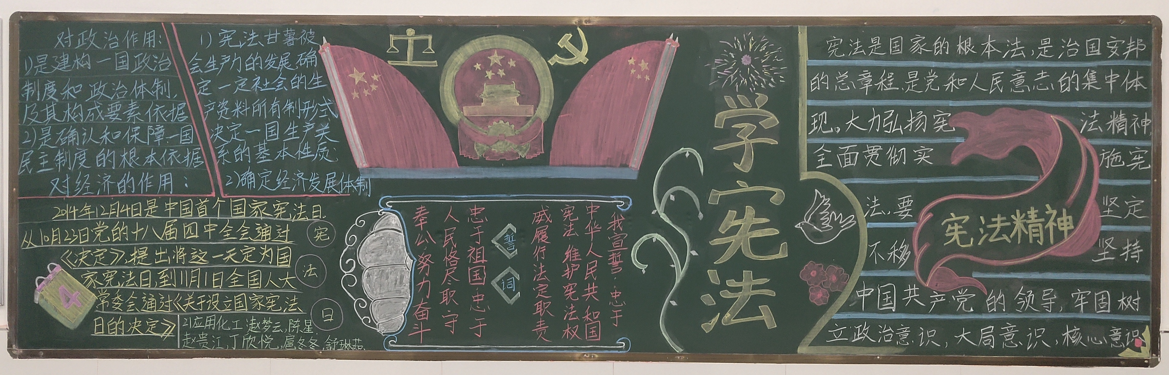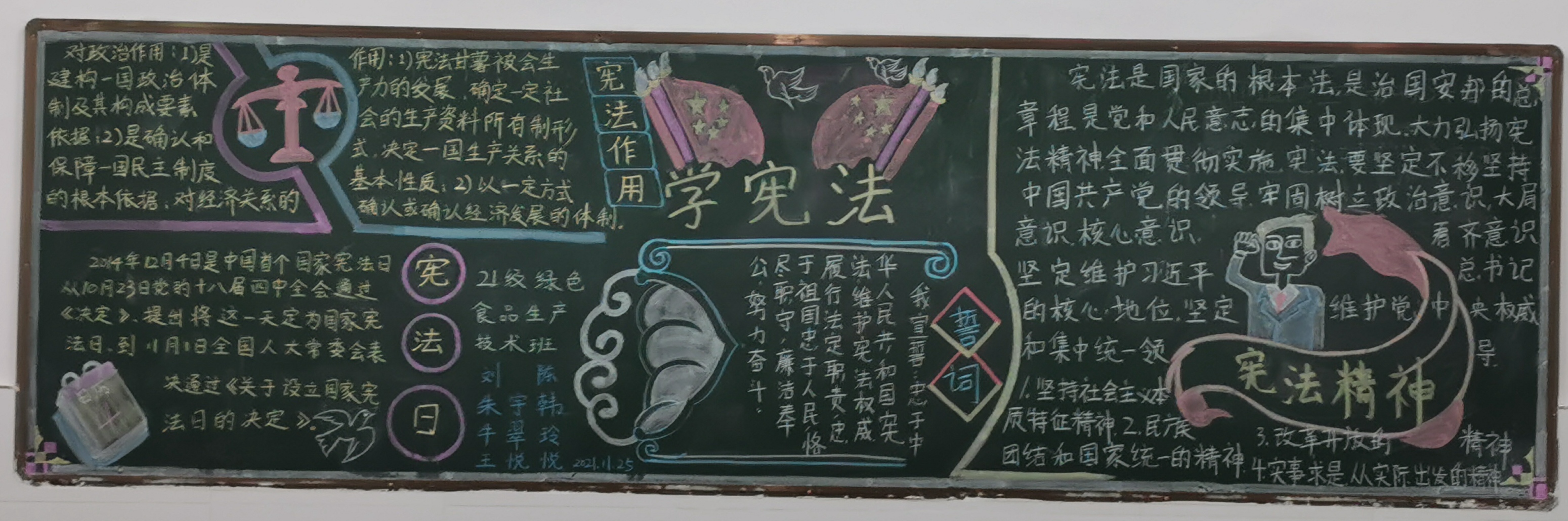 为提高学生的法治意识,弘扬宪法精神,在“12.4宪法宣传日”到来之际,食环学院团总支于11月26日-28日开展以“学宪法 做合格大学生”为主题的板报评比活动。