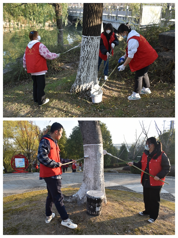 天气逐渐转冷,为提高树木防冻能力,有效抵御害虫伤害,弘扬志愿服务精神,在国际志愿者日到来之际,12月4日早上,食环学院团总支组织萤火虫志愿服务队的青年志愿者来到龙蟠河公园开展“树木刷白迎寒冬 美化环境志愿行”活动。