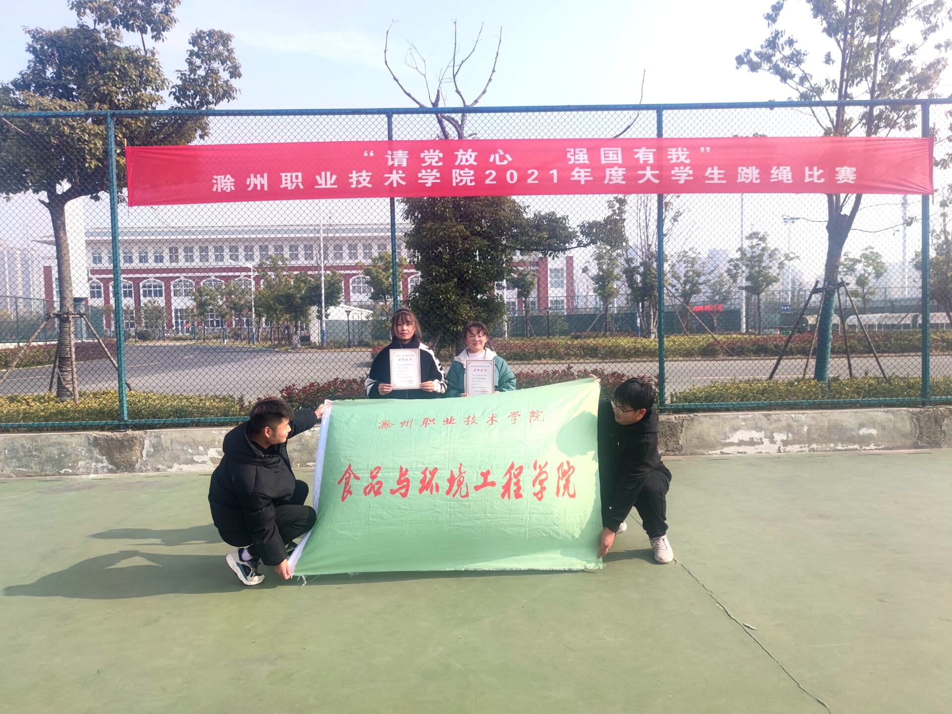 为营造和谐校园氛围,展现大学生积极进取奋发向上的拼搏精神,增强团队协作意识,积极践行体育精神,学校于12月5日下午在手球场举办了“强国有我,请党放心”大学生跳绳比赛。食环学子揽获一、二等奖。