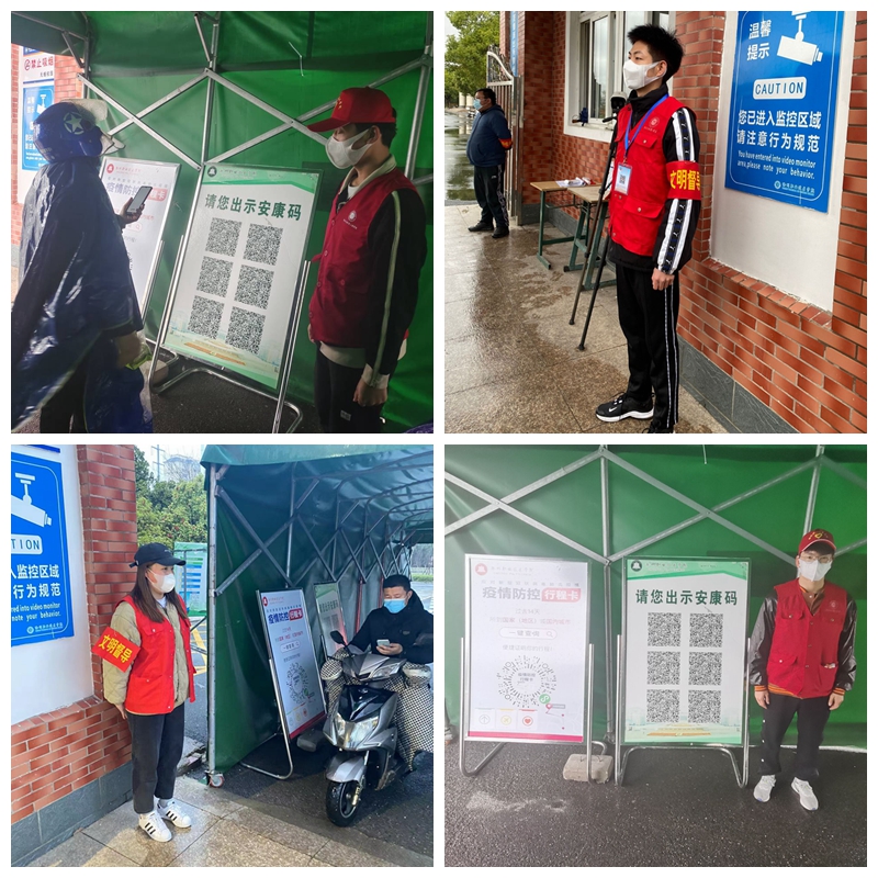 志愿者们穿上红马甲,在学校东门口开展疫情防控志愿服务工作,提醒进出师生佩戴好口罩,核查进出人员的安康码、出入证、行程码并测体温,做好信息登记。在教学楼,入党积极分子戴上红袖章,提醒来往学生戴好口罩,做好个人防护。一张张年轻的脸庞,一件件火红的马甲,树立起一面面鲜红的青年志愿者旗帜,为疫情防控一线带来一抹青春色彩,有力彰显了我院新时代青年的力量与担当。