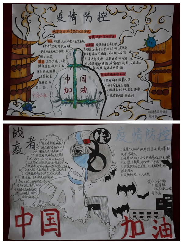 为进一步提高学生自我防护能力,增强同心同力共抗“疫”的信心和决心,3月25日起,食环学院团总支组织开展了“同心同力共抗‘疫’”手抄报评选活动。